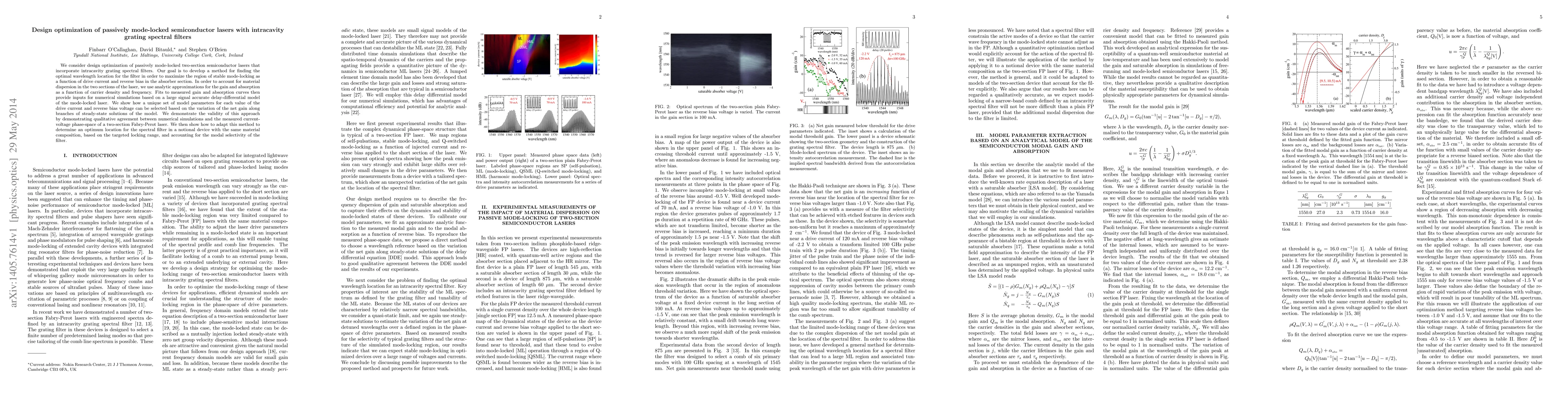 This paper presents a method for optimizing the design of passively mode-locked semiconductor lasers with intracavity grating filters, focusing on determining the optimal wavelength location for the filter to maximize stable mode-locking. The approach uses numerical simulations based on a delay-differential model, validated by comparing with experimental data.