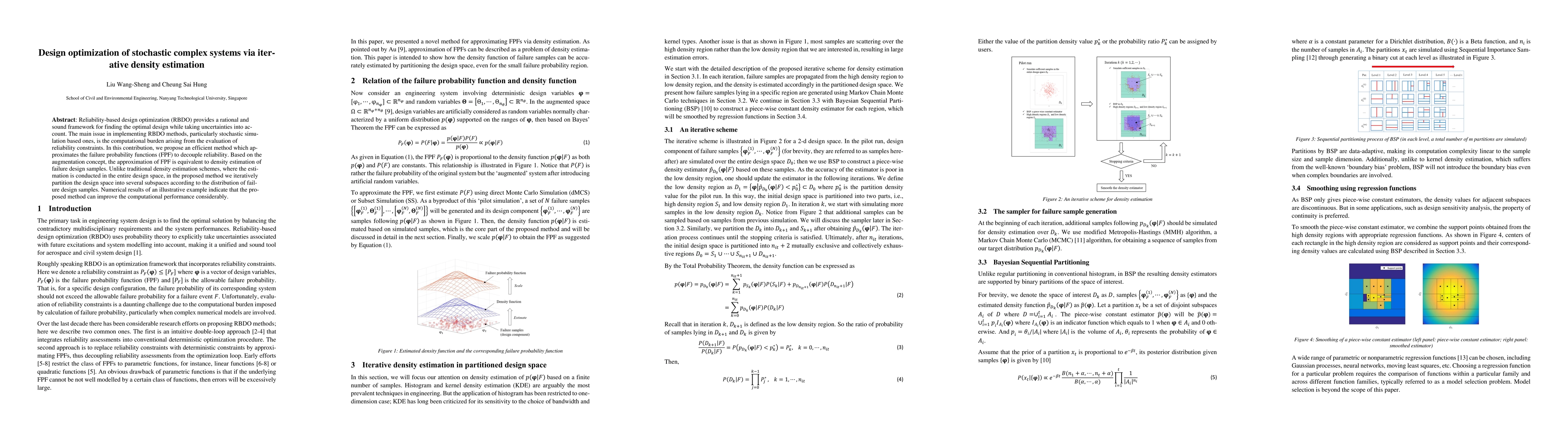 Researchers propose an efficient method to optimize complex systems with uncertainties by approximating failure probability functions through iterative density estimation, reducing computational burden.