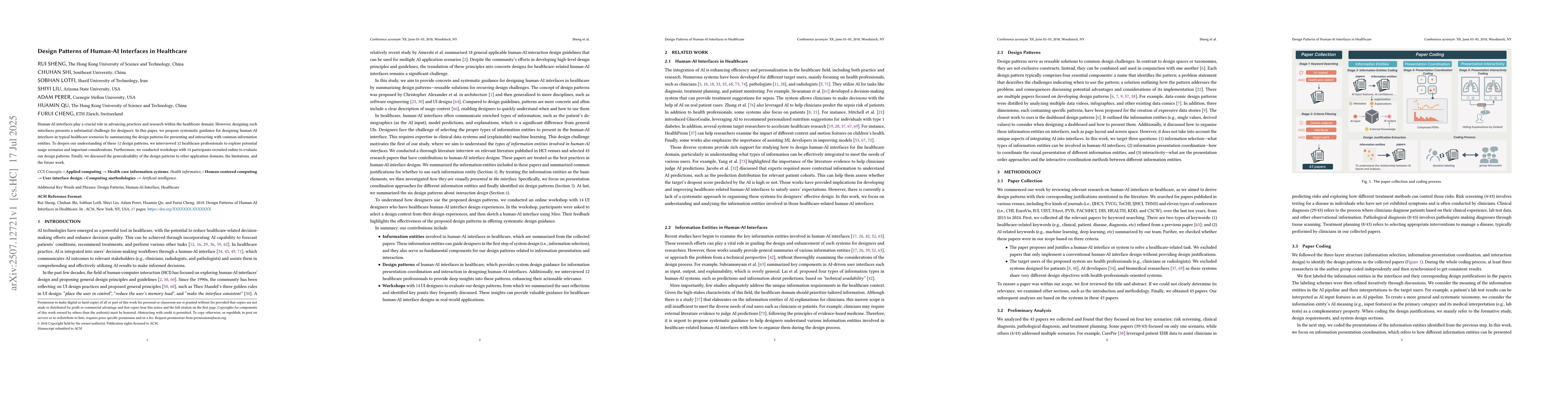 Human-AI interfaces play a crucial role in advancing practices and research within the healthcare domain. However, designing such interfaces presents a substantial challenge for designers. In this paper, we propose systematic guidance for designing human-AI interfaces in typical healthcare scenarios by summarizing the design patterns for presenting and interacting with common information entities. To deepen our understanding of these 12 design patterns, we interviewed 12 healthcare professionals to explore potential usage scenarios and important considerations. Furthermore, we conducted workshops with 14 participants recruited online to evaluate our design patterns. Finally, we discussed the generalizability of the design patterns to other application domains, the limitations, and the future work.