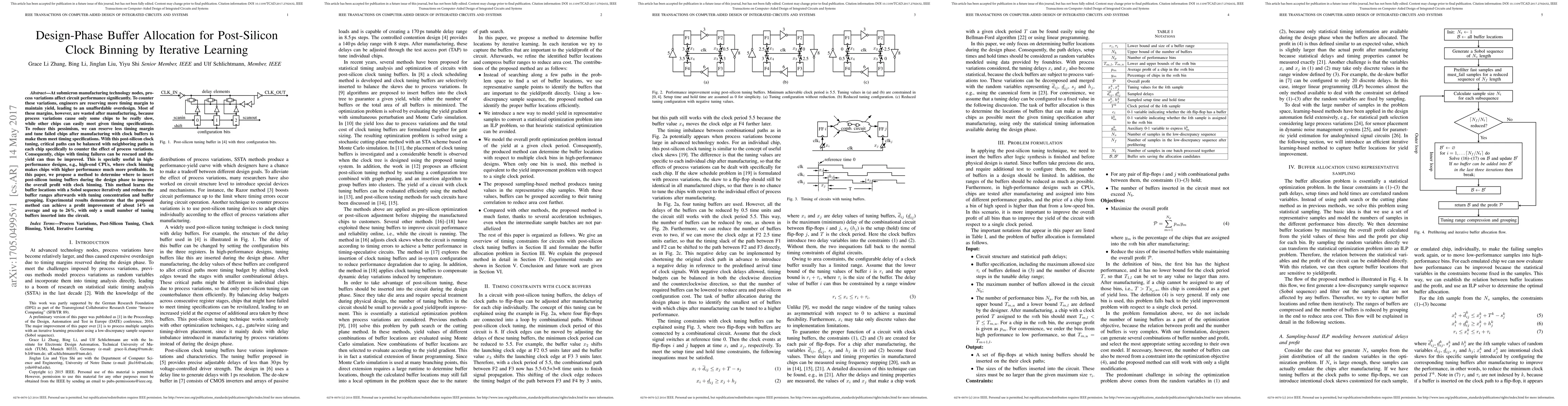 This paper proposes a method for allocating clock buffers during the design phase to optimize post-silicon clock binning, reducing overdesign and improving yield. The method uses iterative learning with a Sobol sequence to determine optimal buffer locations, achieving up to a 26% profit improvement on average.