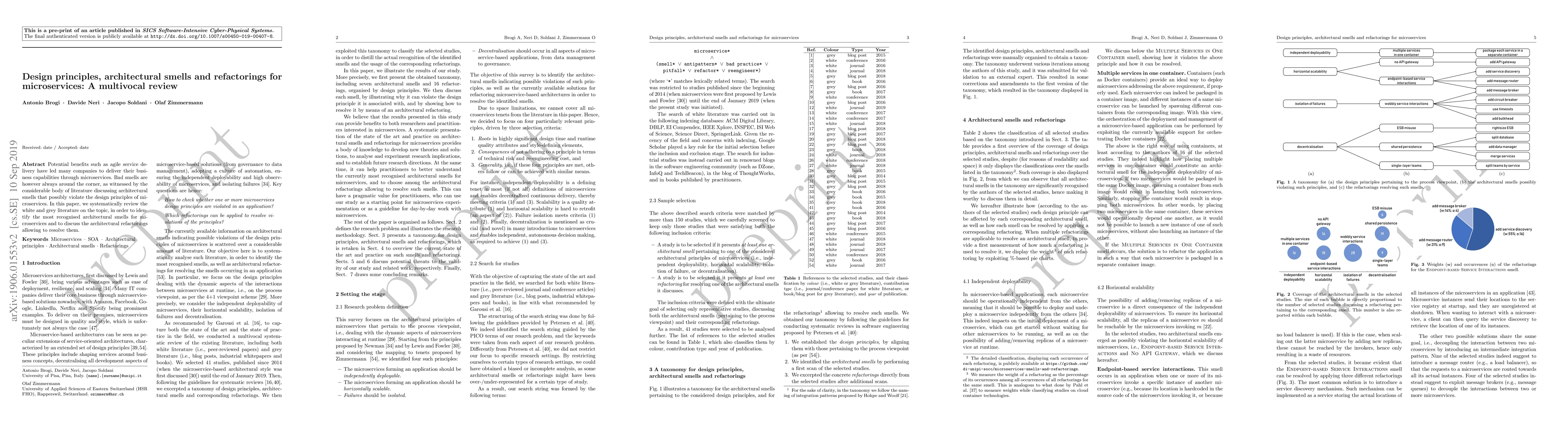 Potential benefits such as agile service delivery have led many companies to deliver their business capabilities through microservices. Bad smells are however always around the corner, as witnessed by the considerable body of literature discussing architectural smells that possibly violate the design principles of microservices. In this paper, we systematically review the white and grey literature on the topic, in order to identify the most recognised architectural smells for microservices and to discuss the architectural refactorings allowing to resolve them.