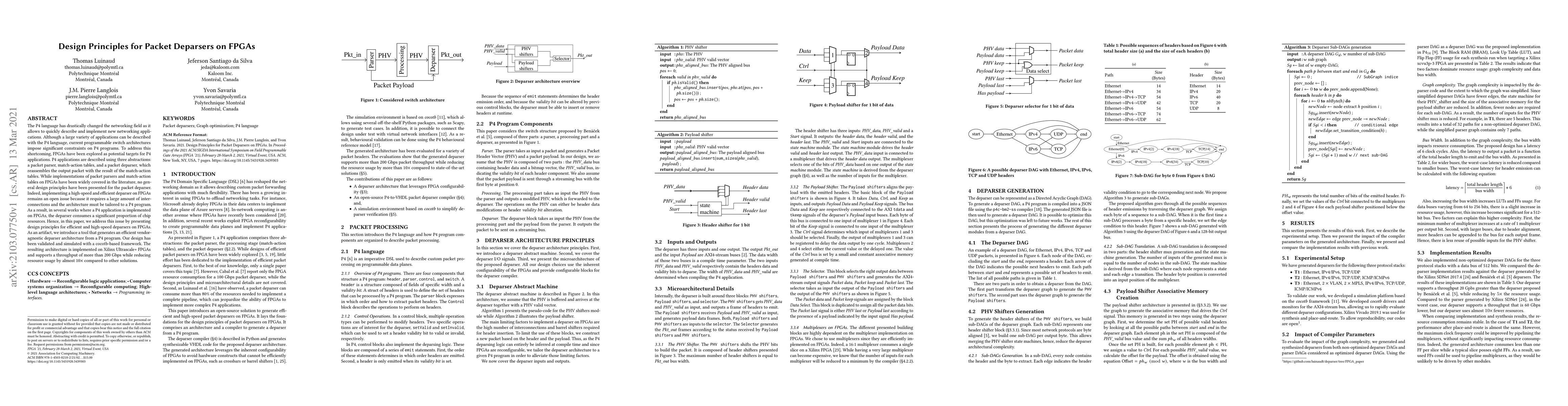 This paper presents design principles for efficient packet deparsers on FPGAs, reducing resource usage by 10x while achieving high speeds over 200 Gbps.