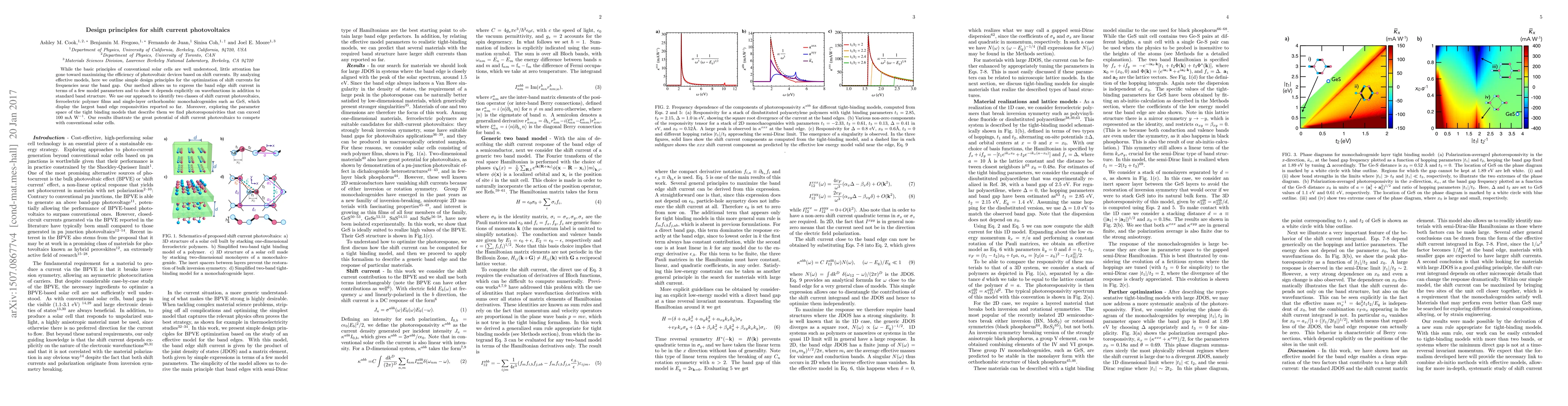 While the basic principles and limitations of conventional solar cells are well understood, relatively little attention has gone toward maximizing the potential efficiency of photovoltaic devices based on shift currents. In this work, we outline simple design principles for the optimization of shift currents for frequencies near the band gap, derived from the analysis of a general effective model. The use of a novel sum rule allows us to express the band edge shift current in terms of a few model parameters and to show it depends explicitly on wavefunctions via Berry connections in addition to standard band structure. We use our approach to identify two new classes of shift current photovoltaics, ferroelectric polymer films and single-layer orthorhombic monochalcogenides such as GeS. We introduce tight-binding models for these systems, and show that they exhibit the largest shift current responsivities at the band edge reported so far. Moreover, exploring the parameter space of these models we find photoresponsivities that can exceed $100$ mA/W. Our results show how the study of the shift current via effective models allows one to improve the possible efficiency of devices based on this mechanism and better grasp their potential to compete with conventional solar cells.