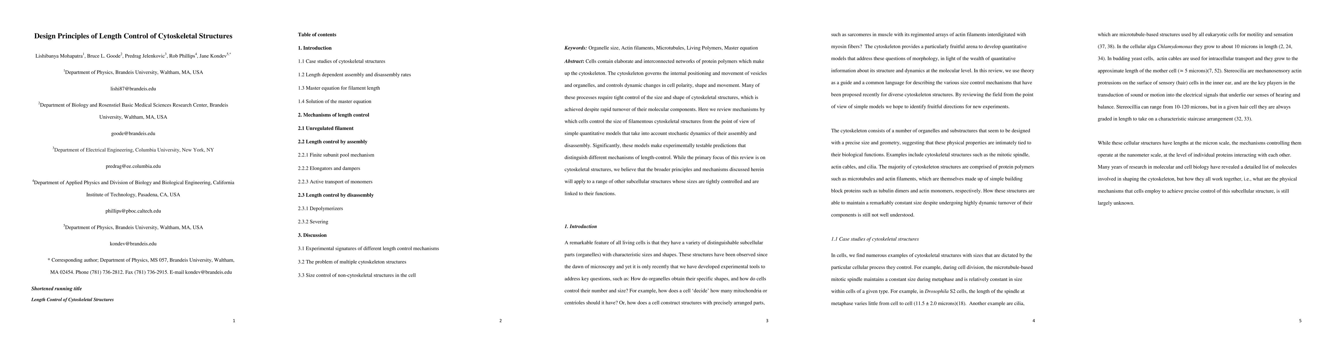 This paper reviews mechanisms for controlling the size of cytoskeletal structures, emphasizing quantitative models that account for stochastic assembly and disassembly dynamics. The models provide testable predictions to distinguish different length-control mechanisms, with broader applicability to other tightly regulated subcellular structures.