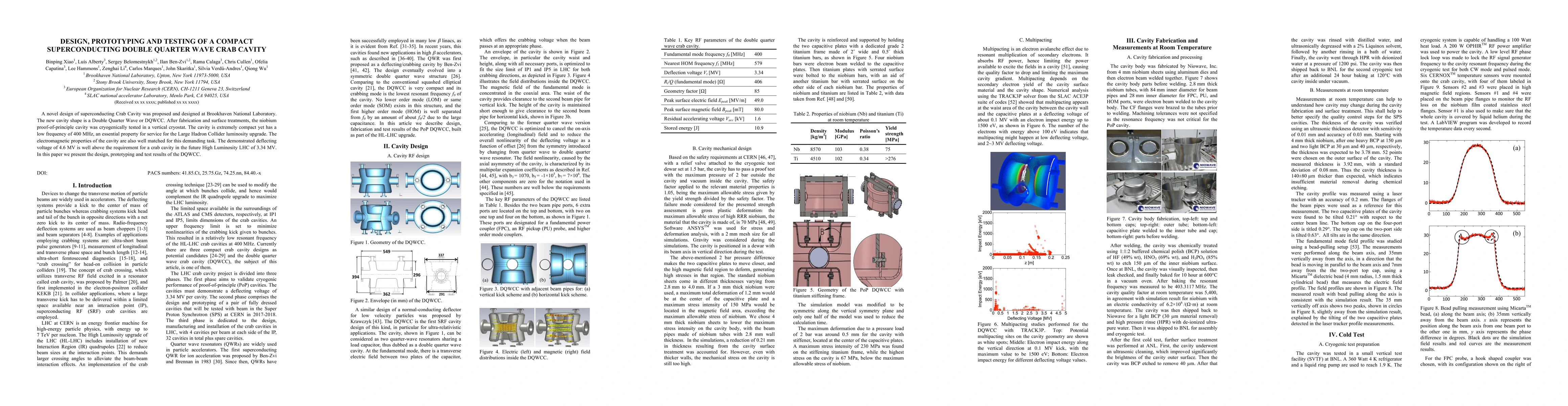 A novel design of superconducting Crab Cavity was proposed and designed at Brookhaven National Laboratory. The new cavity shape is a Double Quarter Wave or DQWCC. After fabrication and surface treatments, the niobium proof-of-principle cavity was cryogenically tested in a vertical cryostat. The cavity is extremely compact yet has a low frequency of 400 MHz, an essential property for service for the Large Hadron Collider luminosity upgrade. The electromagnetic properties of the cavity are also well matched for this demanding task. The demonstrated deflecting voltage of 4.6 MV is well above the requirement for a crab cavity in the future High Luminosity LHC of 3.34 MV. In this paper we present the design, prototyping and test results of the DQWCC.