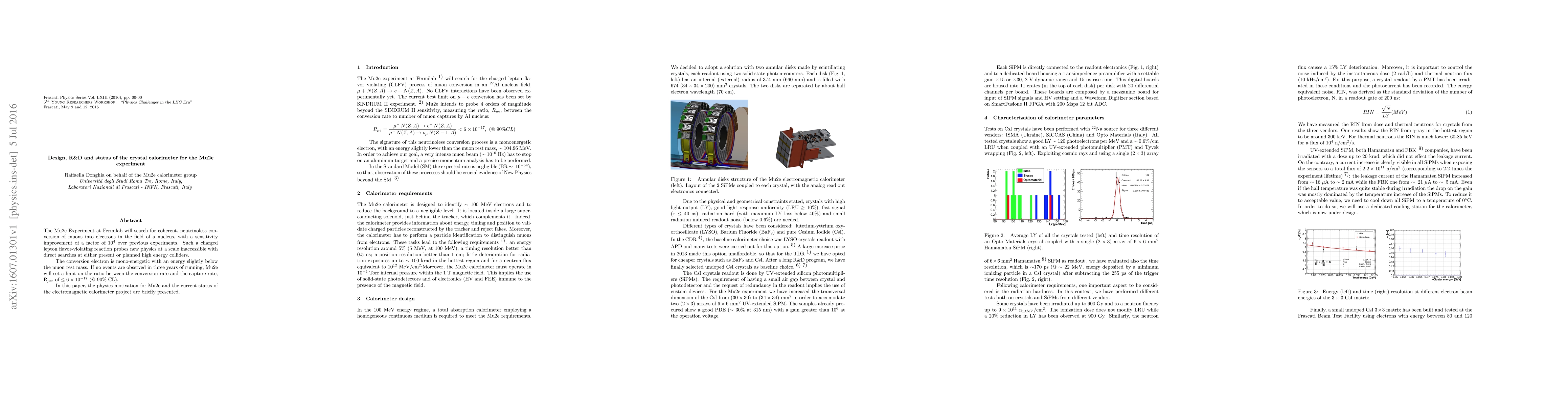 The Mu2e experiment aims to detect neutrinoless muon-to-electron conversion with unprecedented sensitivity, probing new physics beyond current collider capabilities. The paper discusses the design and current status of the crystal calorimeter, a key component in achieving the experiment's high precision.