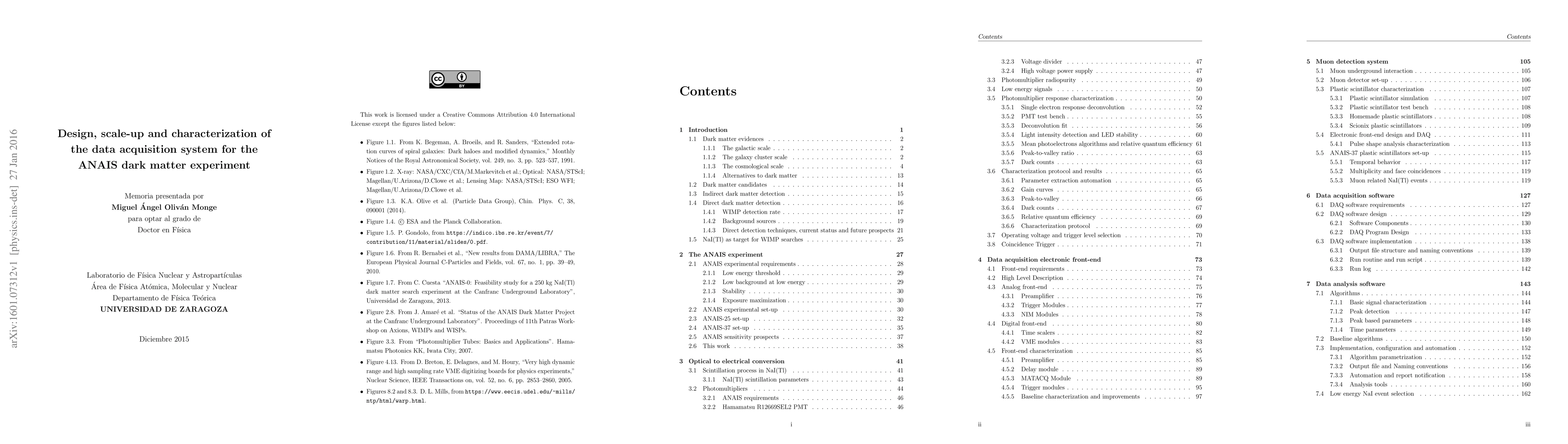 The ANAIS project has been a long time effort devoted to carry out an experiment to detect dark matter annual modulation with very low background NaI(Tl) detectors. It is expected to be fully commissioned along 2016. This experiment could confirm the DAMA/LIBRA positive signal with the same target and technique. This work was devoted to the design, implementation and characterization of a data acquisition system suitable for the ANAIS experiment, having in mind the ANAIS requirements: very low energy threshold, a background as low as possible in the region of interest, a high enough exposure and a rigorous parameter control in order to monitor systematics. This work describes the Photomultiplier Tubes used by the ANAIS modules and the algorithms and protocol developed in order to pass quality tests to all units. It presents the design and implementation of the electronic front-end for the ANAIS modules and muon tagging system along with the data acquisition software. The analysis software was adapted from the software of the previous prototypes to allow easy scale-up for the full experiment. Finally, the test of the optical performance of the Alpha Spectra modules and the tests of data acquisition and monitoring of environmental parameters are presented.
