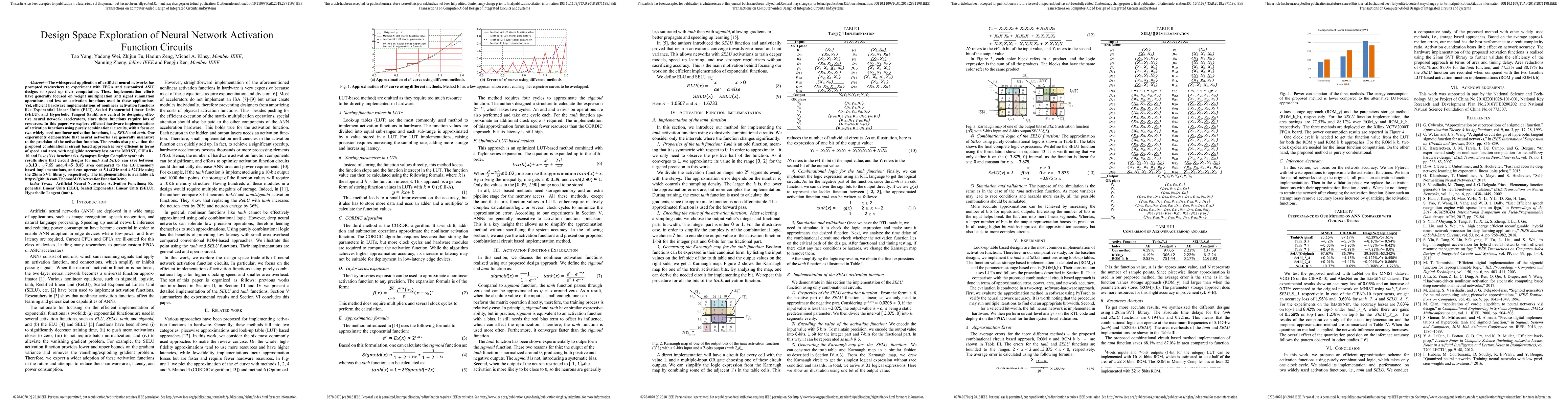 This paper explores efficient hardware implementations of nonlinear activation functions, specifically SELU and tanh, using combinational circuits for neural network accelerators. The study finds that these circuits are highly efficient in terms of speed and area, with minimal accuracy loss on benchmark datasets, and outperform LUT/memory-based implementations by saving significant area and achieving high operating frequencies.