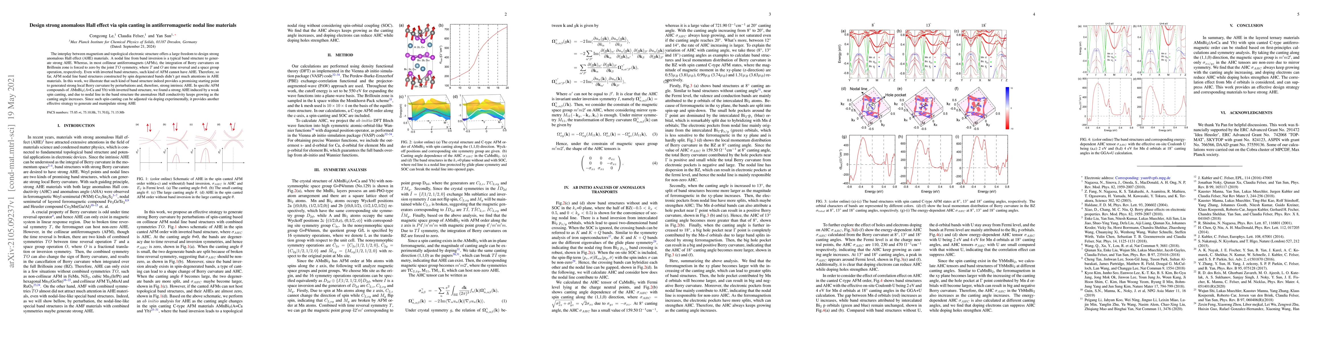 This paper demonstrates that antiferromagnetic nodal line materials can exhibit a strong anomalous Hall effect (AHE) through spin canting, a phenomenon that can be experimentally controlled via doping. The study highlights that $A$MnBi$_2$ ($A$=Ca and Yb) compounds, with inverted band structures and nodal lines, show a significant AHE that increases with the spin canting angle.