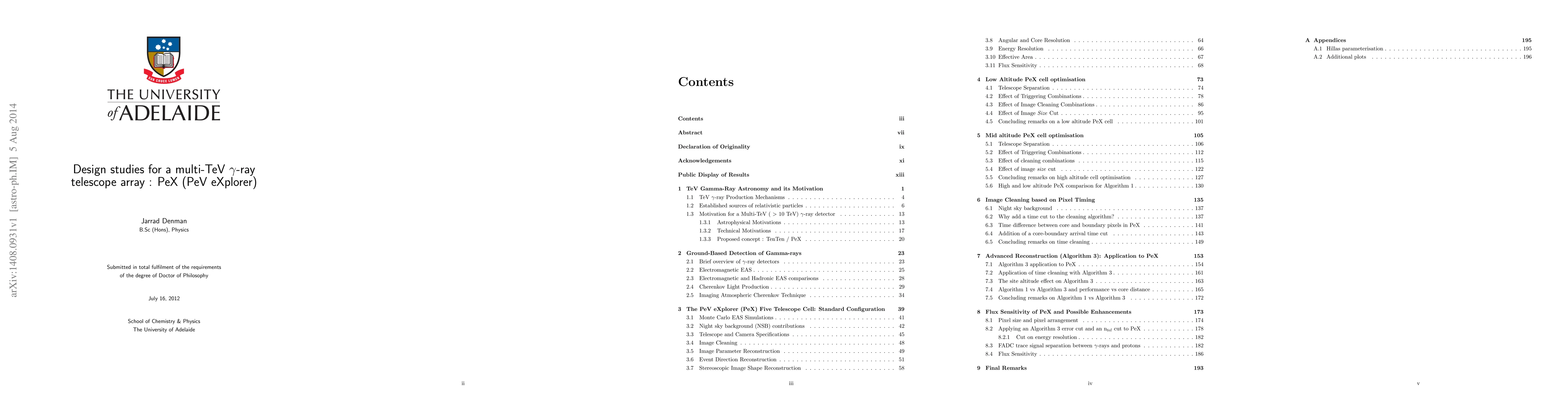 (Abridged) This thesis presents work towards the design of a new array of Image Atmospheric Cherenkov Telescopes (IACTs) to detect multi-TeV gamma-ray sources. The array consists of 5 telescopes in a square layout with one central telescope, known as the Pevatron eXplorer or PeX. PeX is a PeV (10^{15} eV) cosmic ray explorer that aims to study and discover gamma-ray sources in the 1 to 500 TeV range. The initial PeX design has been influenced by the HEGRA CT-System and H.E.S.S. configurations. One important feature of multi-TeV air showers is their ability to trigger telescopes at large core distance (>400m). PeX will utilise large core distance events to improve the performance and illustrate the viability of a sparse array for multi-TeV gamma-ray astronomy. One important aspect of the thesis (Chapter 6) was the investigation of a new time-based image cleaning method. The arrival time between photons in two adjacent pixels in the camera is used to apply an extra cut which helps mitigate night sky background. To illustrate the robustness of the time cleaning cut, various level of night sky background have been considered. These levels include: off-Galactic plane, on-Galactic plane and towards the Galactic centre. The most important result is that PeX performance with a time cleaning cut improves results when a high level of night sky background is present. For a Galactic centre level of night sky background there is a factor of 1.5 improvement in angular resolution, effective area and quality factor when a time cleaning cut is applied compared to using no time cleaning cut.