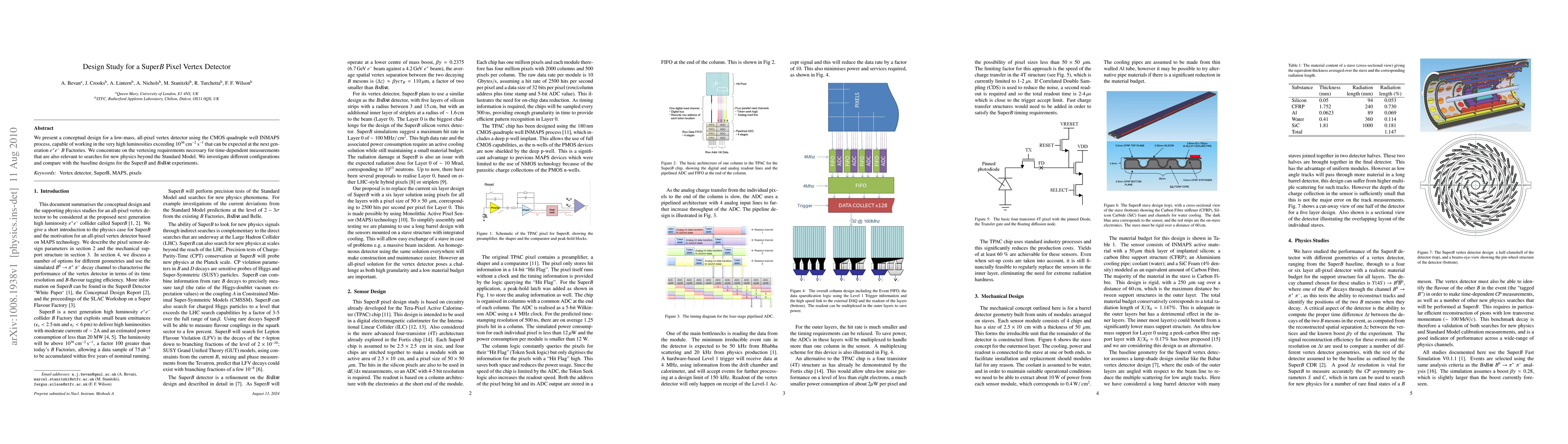 We present a conceptual design for a low-mass, all pixel vertex detector using the CMOS quadruple well INMAPS process, capable of working in the very high luminosities exceeding 10^36 /cm^2 /sec that can be expected at the next generation e+e- B factories. We concentrate on the vertexing requirements necessary for time-dependent measurements that are also relevant to searches for new physics beyond the Standard Model. We investigate different configurations and compare with the baseline designs for the SuperB and BaBar experiments.