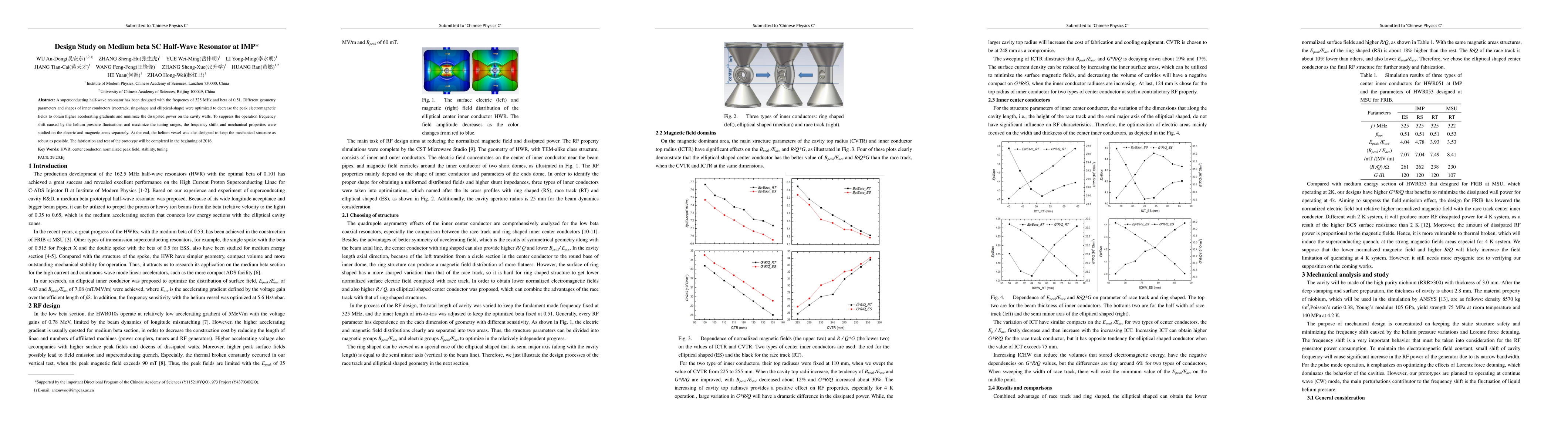 A superconducting half-wave resonator has been designed with the frequency of 325 MHz and beta of 0.51. Different geometry parameters and shapes of inner conductors (racetrack, ring-shape and elliptical-shape) were optimized to decrease the peak electromagnetic fields to obtain higher accelerating gradients and minimize the dissipated power on the cavity walls. To suppress the operation frequency shift caused by the helium pressure fluctuations and maximize the tuning ranges, the frequency shifts and mechanical properties were studied on the electric and magnetic areas separately. At the end, the helium vessel was also designed to keep the mechanical structure as robust as possible. The fabrication and test of the prototype will be completed in the beginning of 2016.
