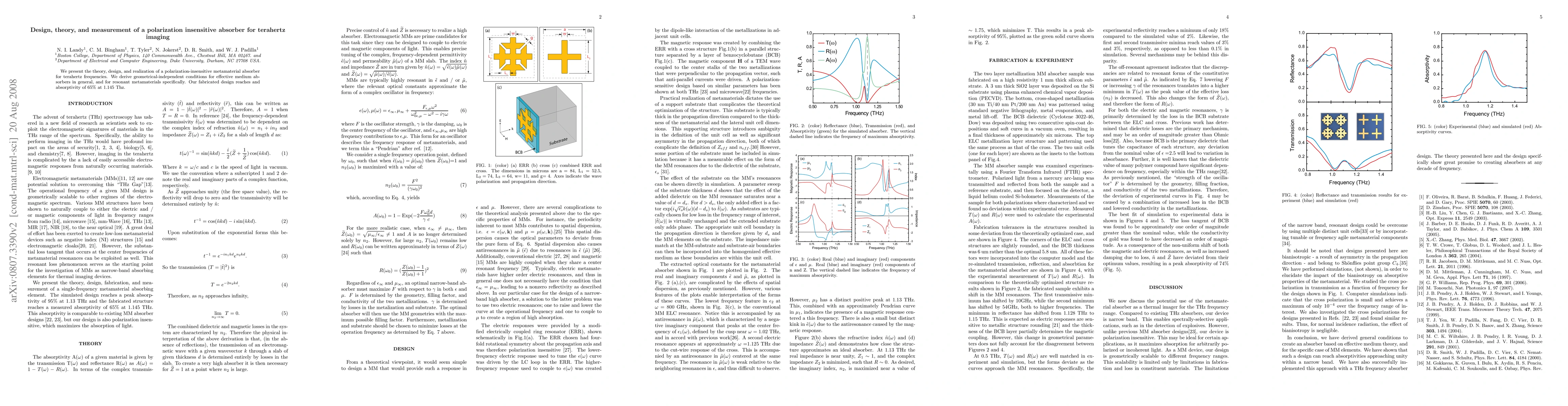 We present the theory, design, and realization of a polarization-insensitive metamaterial absorber for terahertz frequencies. We derive geometrical-independent conditions for effective medium absorbers in general, and for resonant metamaterials specically. Our fabricated design reaches and absorptivity of 78% at 1.145 Thz