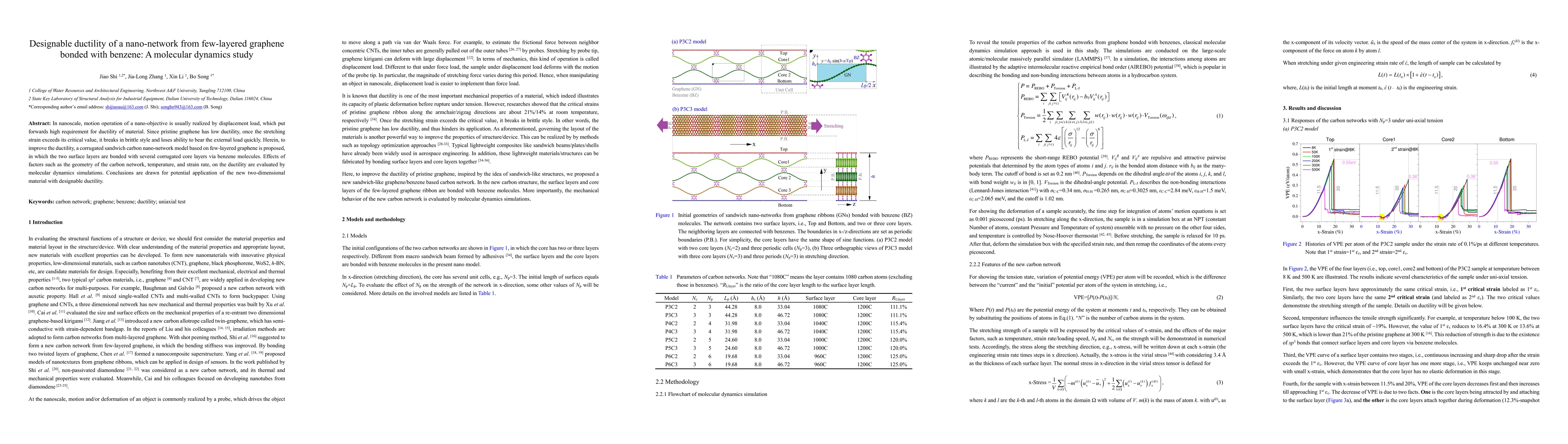 In nanoscale, motion operation of a nano-objective is usually realized by displacement load, which put forwards high requirement for ductility of material. Since pristine graphene has low ductility, once the stretching strain exceeds its critical value, it breaks in brittle style and loses ability to bear the external load quickly. Herein, to improve the ductility, a corrugated sandwich carbon nano-network model based on few-layered graphene is proposed, in which the two surface layers are bonded with several corrugated core layers via benzene molecules. Effects of factors such as the geometry of the carbon network, temperature, and strain rate, on the ductility are evaluated by molecular dynamics simulations. Conclusions are drawn for potential application of the new two-dimensional material with designable ductility.