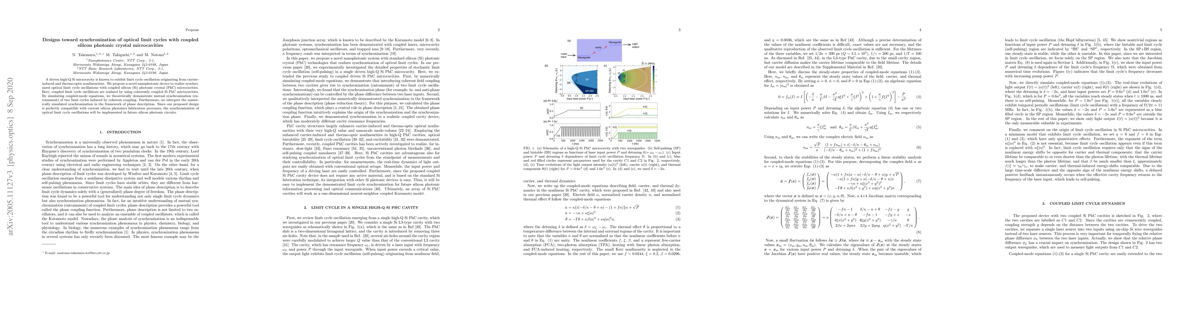 The proposed design and synchronization method leverage coherent coupling in silicon photonic crystal microcavities, offering a novel approach for synchronizing optical limit cycles compatible with existing fabrication processes.
