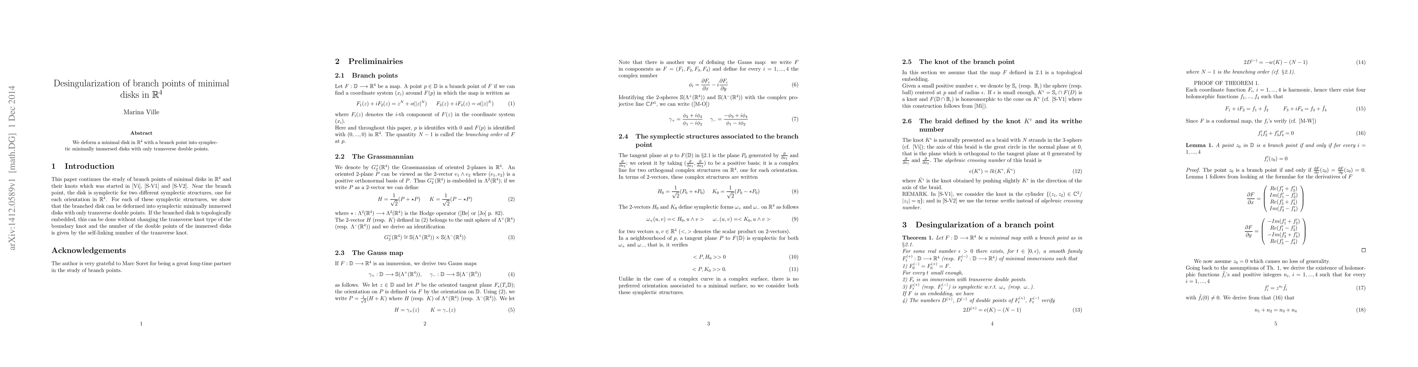 Summary: This paper presents a method to transform a minimal disk in $\mathbb{R}^4$ with a branch point into symplectic minimally immersed disks featuring only transverse double points, thereby achieving desingularization.