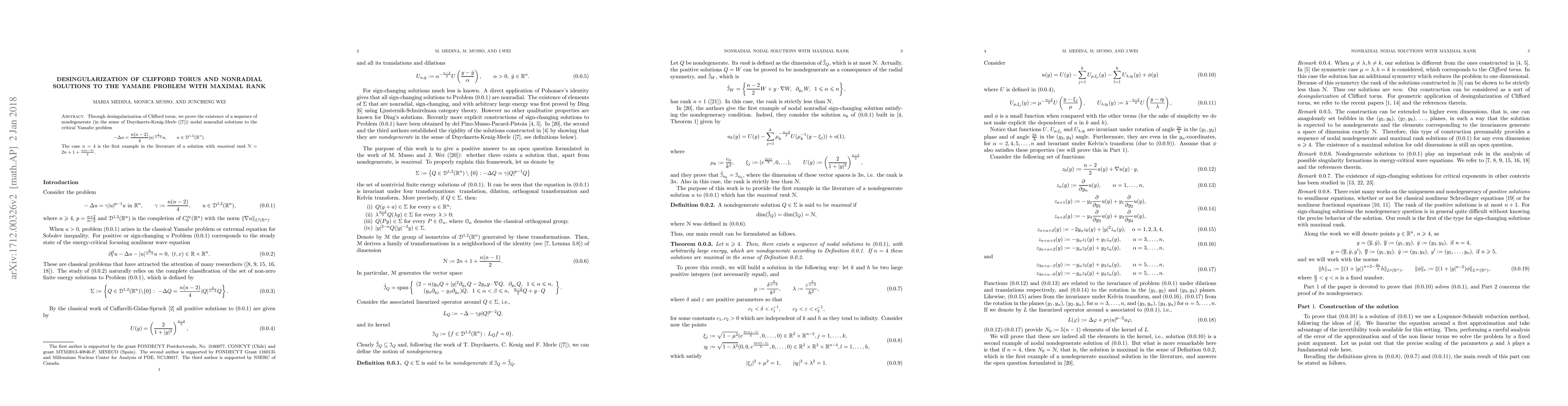 This paper demonstrates the desingularization of the Clifford torus to establish nonradial solutions to the Yamabe problem, specifically showing the existence of nodal solutions with maximal rank in the case of \( n = 4 \). The solutions are nondegenerate and exhibit maximal rank \( \mathcal{N} = 15 \).