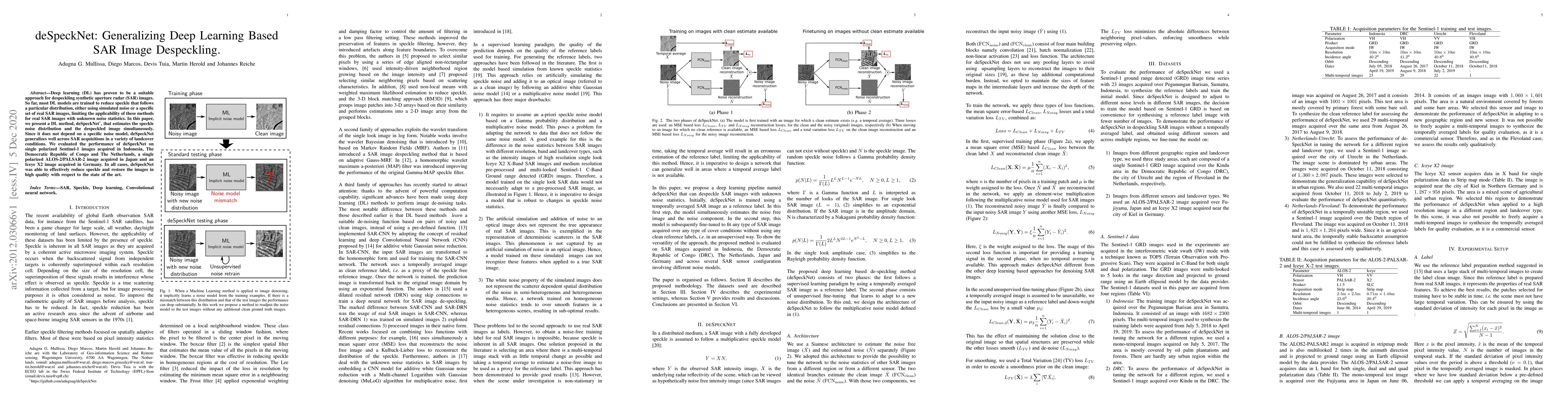 A new deep learning method, deSpeckNet, can generalize despeckling of synthetic aperture radar images across different land cover conditions without requiring a specific noise model. It effectively reduced speckle in images from various sources.