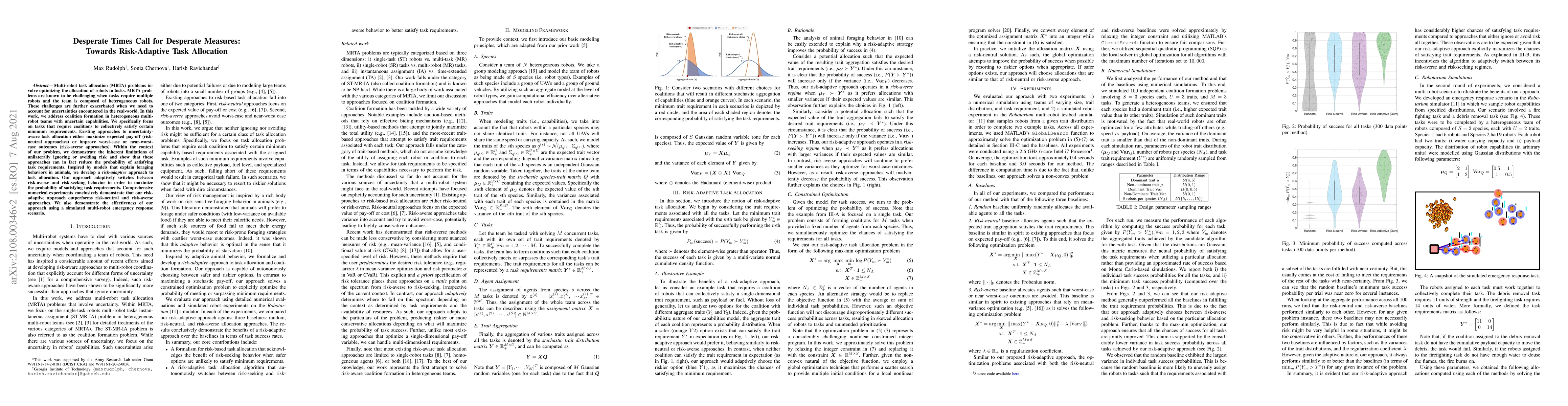 Multi-robot task allocation (MRTA) problems involve optimizing the allocation of robots to tasks. MRTA problems are known to be challenging when tasks require multiple robots and the team is composed of heterogeneous robots. These challenges are further exacerbated when we need to account for uncertainties encountered in the real-world. In this work, we address coalition formation in heterogeneous multi-robot teams with uncertain capabilities. We specifically focus on tasks that require coalitions to collectively satisfy certain minimum requirements. Existing approaches to uncertainty-aware task allocation either maximize expected pay-off (risk-neutral approaches) or improve worst-case or near-worst-case outcomes (risk-averse approaches). Within the context of our problem, we demonstrate the inherent limitations of unilaterally ignoring or avoiding risk and show that these approaches can in fact reduce the probability of satisfying task requirements. Inspired by models that explain foraging behaviors in animals, we develop a risk-adaptive approach to task allocation. Our approach adaptively switches between risk-averse and risk-seeking behavior in order to maximize the probability of satisfying task requirements. Comprehensive numerical experiments conclusively demonstrate that our risk-adaptive approach outperforms risk-neutral and risk-averse approaches. We also demonstrate the effectiveness of our approach using a simulated multi-robot emergency response scenario.