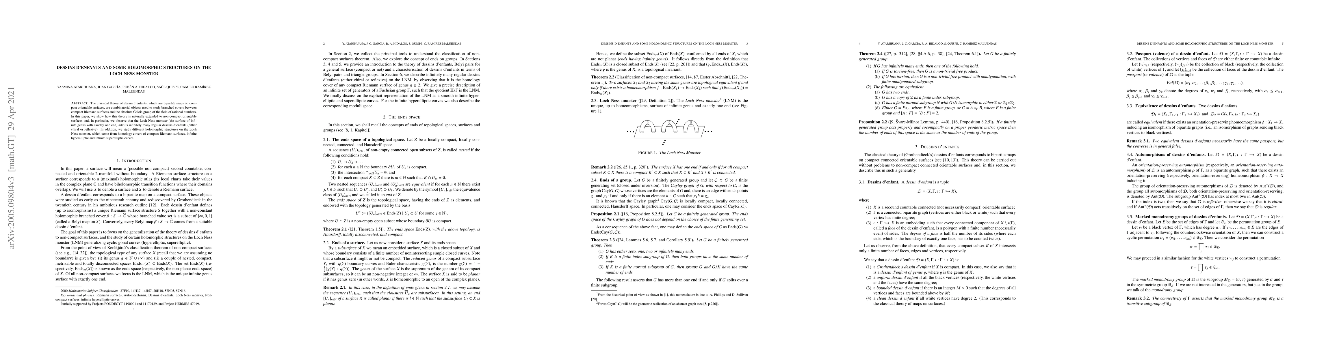 This paper extends the classical theory of dessins d'enfants to non-compact orientable surfaces, demonstrating that the Loch Ness monster, an infinite genus surface with one end, supports infinitely many regular dessins. It also explores various holomorphic structures on the Loch Ness monster derived from homology covers and infinite hyperelliptic/superelliptic curves.