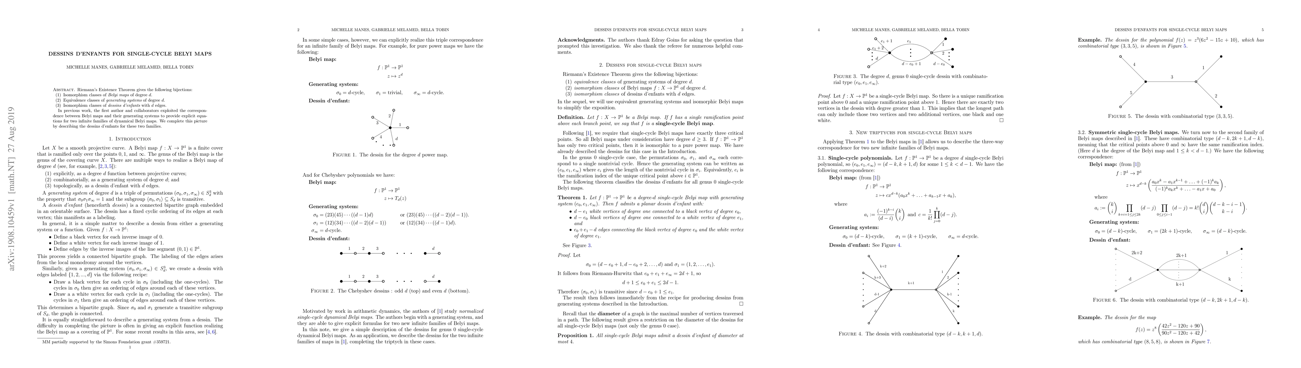 This paper explores the relationship between single-cycle Belyi maps and dessins d'enfants, completing previous work that linked Belyi maps with their generating systems, and explicitly describes the dessins d'enfants for two infinite families of dynamical Belyi maps.