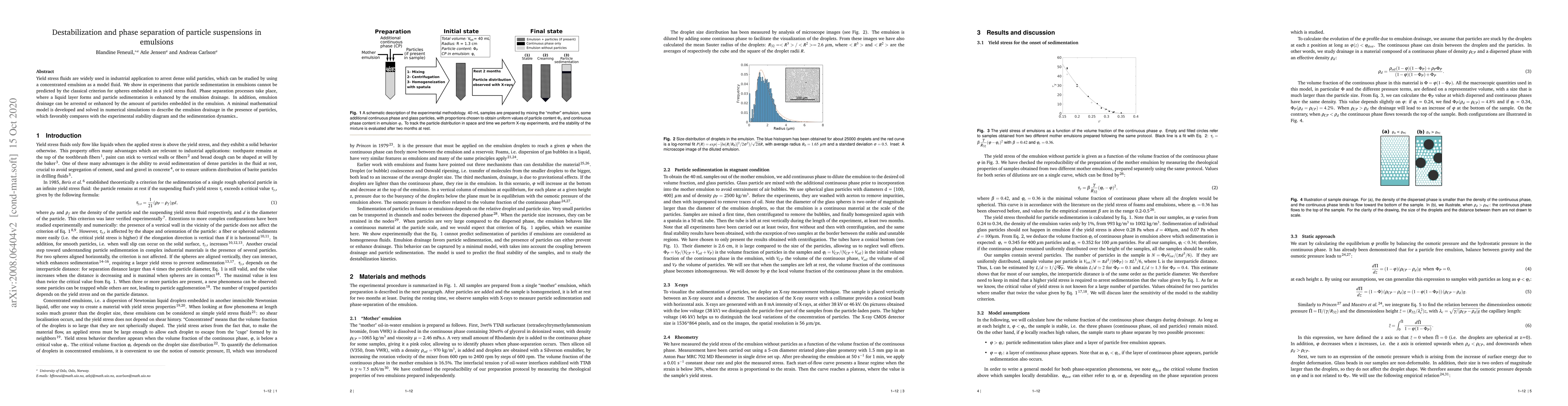 Researchers discovered that particle sedimentation in emulsions can't be predicted by classical models, but instead shows phase separation processes where particles enhance or arrest emulsion drainage. A mathematical model was developed to describe this phenomenon, which matches experimental stability diagrams and sedimentation dynamics.