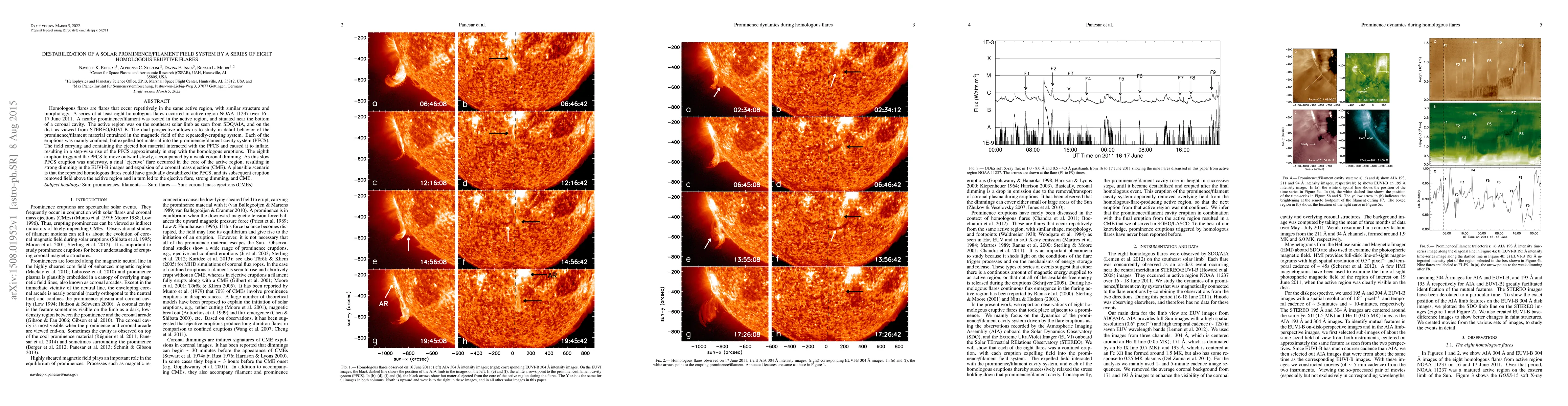 This paper investigates a series of eight homologous flares in active region NOAA 11237, which destabilized a nearby solar prominence/filament. The repeated eruptions expelled hot material, causing the prominence to inflate and rise, culminating in a final ejective flare and coronal mass ejection.