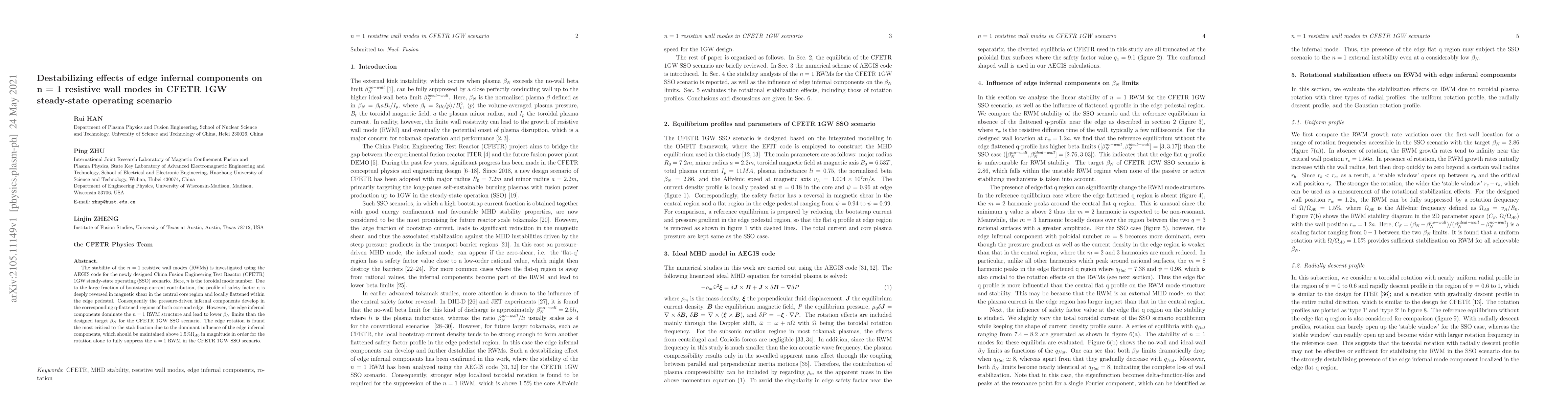 This paper investigates the destabilizing effects of edge infernal components on $n=1$ resistive wall modes in the CFETR 1GW steady-state scenario, revealing that edge rotation must exceed $1.5\%\Omega_{A0}$ to suppress these modes due to their dominant influence.