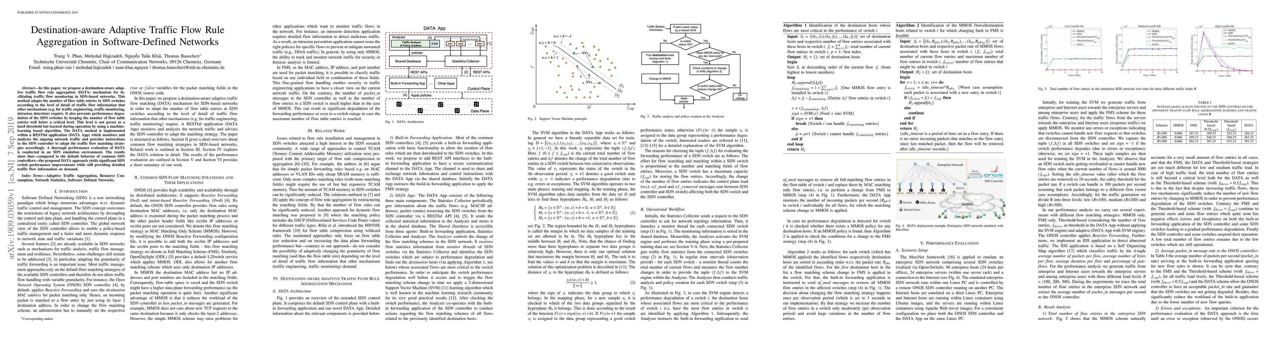 This paper introduces a destination-aware adaptive traffic flow rule aggregation (DATA) mechanism for Software-Defined Networks (SDN) that dynamically adjusts flow table entries to optimize performance while maintaining detailed traffic flow monitoring. The DATA method employs a machine-learning algorithm to learn optimal flow entry thresholds, implemented via a RESTful application, and demonstrates significant performance improvements in SDN switches.