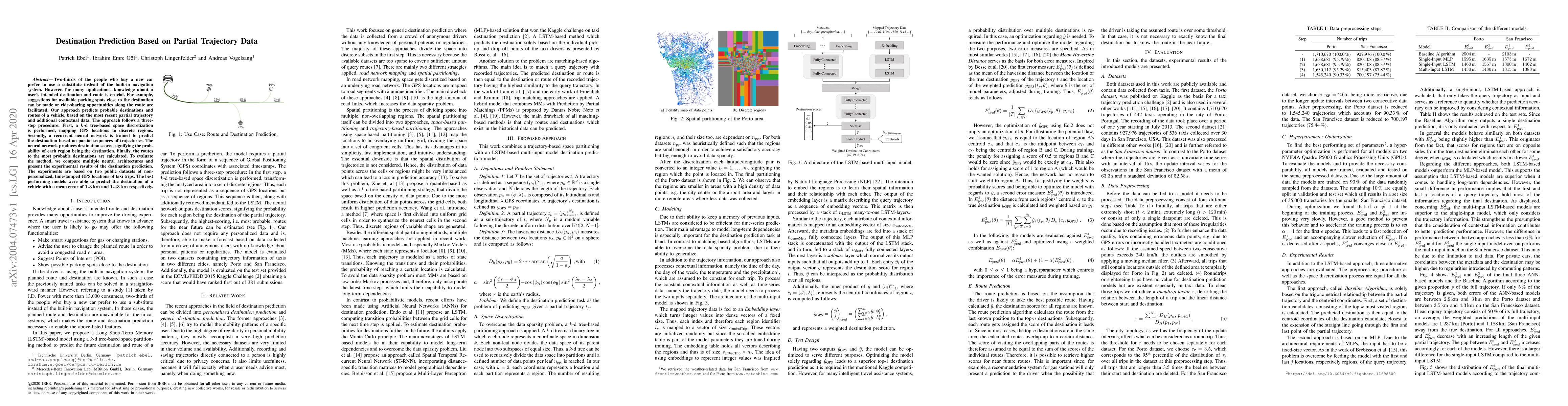 This paper proposes a method to predict vehicle destinations using partial trajectory data and contextual information. It employs a $k$-d tree for space discretization, a recurrent neural network for destination prediction, and calculates routes to the predicted destinations. Experimental results show a mean prediction error of 1.3 to 1.43 km using public taxi GPS datasets.