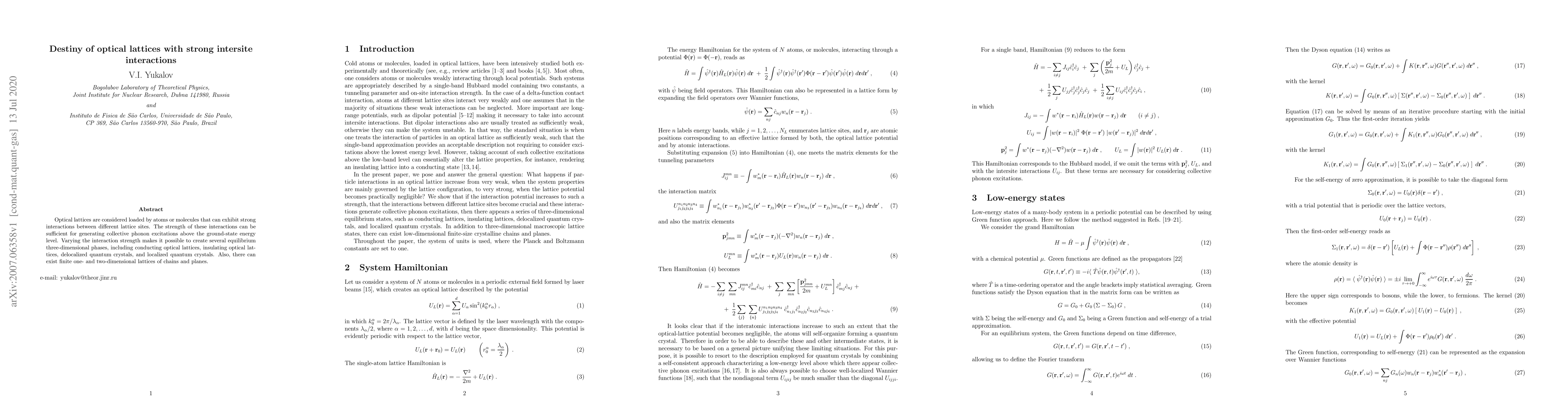 This paper explores optical lattices loaded with atoms or molecules experiencing strong intersite interactions, which can generate collective phonon excitations and lead to various equilibrium phases, including conducting, insulating, and localized quantum crystals. The study also examines the potential for finite one- and two-dimensional lattices.