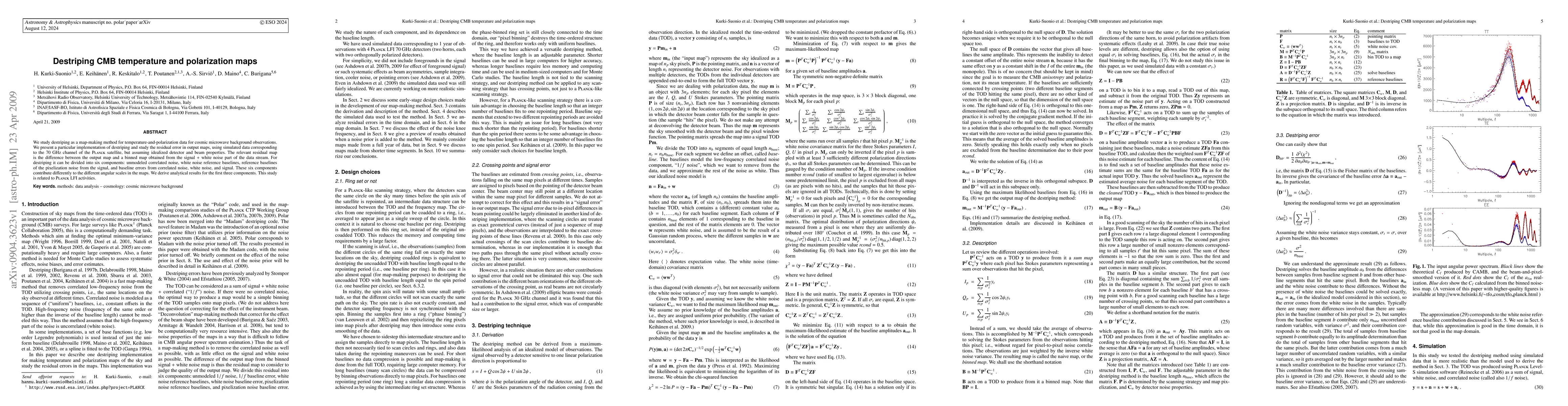 We study destriping as a map-making method for temperature-and-polarization data for cosmic microwave background observations. We present a particular implementation of destriping and study the residual error in output maps, using simulated data corresponding to the 70 GHz channel of the Planck satellite, but assuming idealized detector and beam properties. The relevant residual map is the difference between the output map and a binned map obtained from the signal + white noise part of the data stream. For destriping it can be divided into six components: unmodeled correlated noise, white noise reference baselines, reference baselines of the pixelization noise from the signal, and baseline errors from correlated noise, white noise, and signal. These six components contribute differently to the different angular scales in the maps. We derive analytical results for the first three components. This study is related to Planck LFI activities.