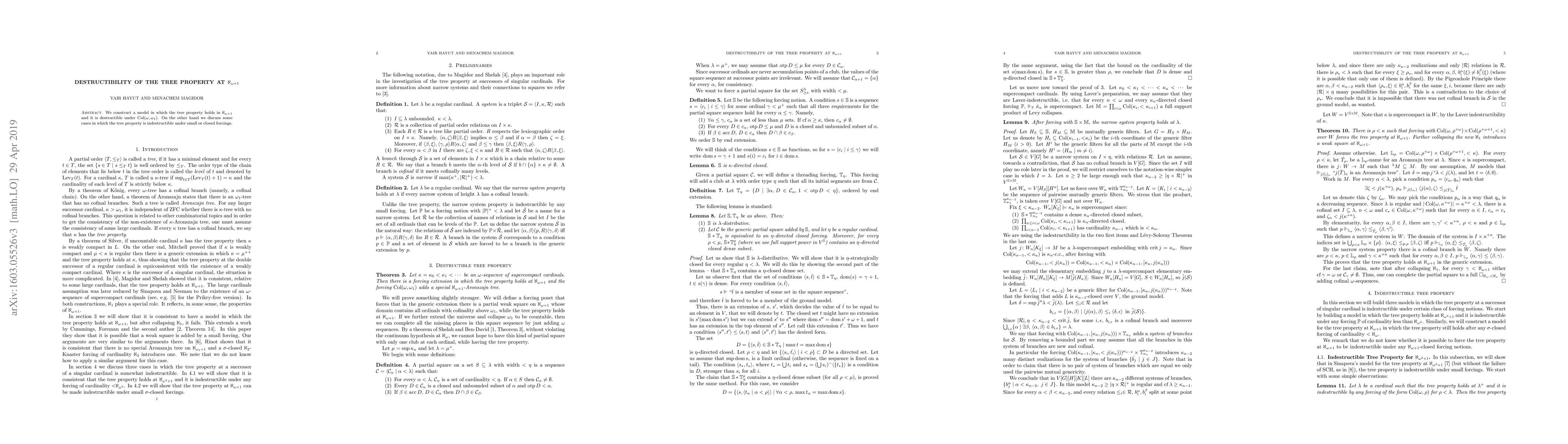 This paper constructs a model where the tree property at $\aleph_{\omega+1}$ is destructible by $\text{Col}(\omega, \omega_1)$ forcing, while also examining scenarios where the tree property remains indestructible under smaller or closed forcing notions.
