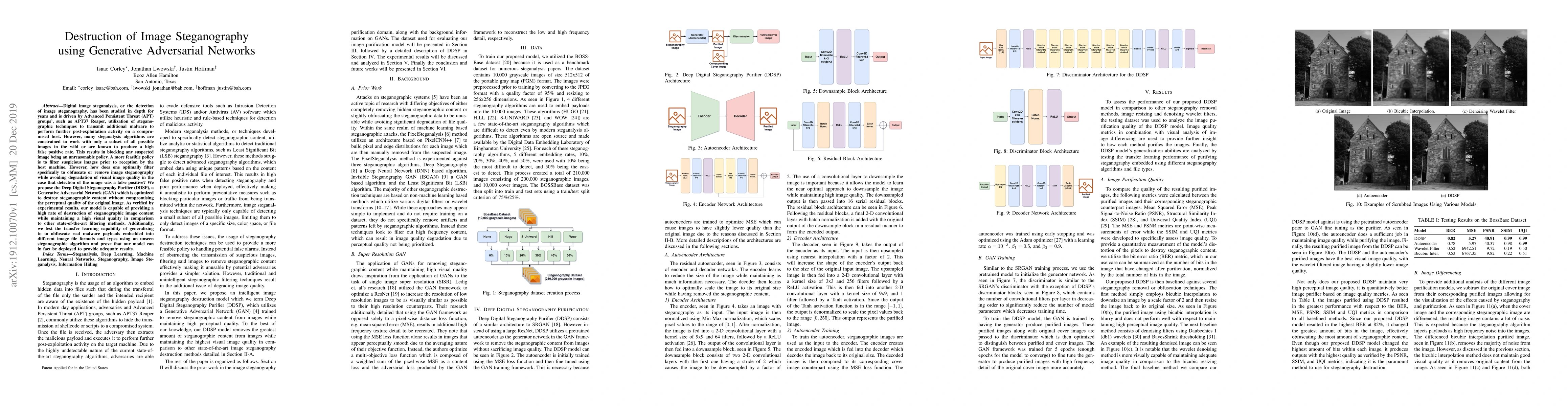 The paper proposes the Deep Digital Steganography Purifier (DDSP), a Generative Adversarial Network designed to detect and remove steganographic content from images without degrading visual quality, and demonstrates its effectiveness in filtering out embedded steganography while maintaining image integrity. The model also shows transfer learning capability for generalizing to different image types and unseen steganographic algorithms.