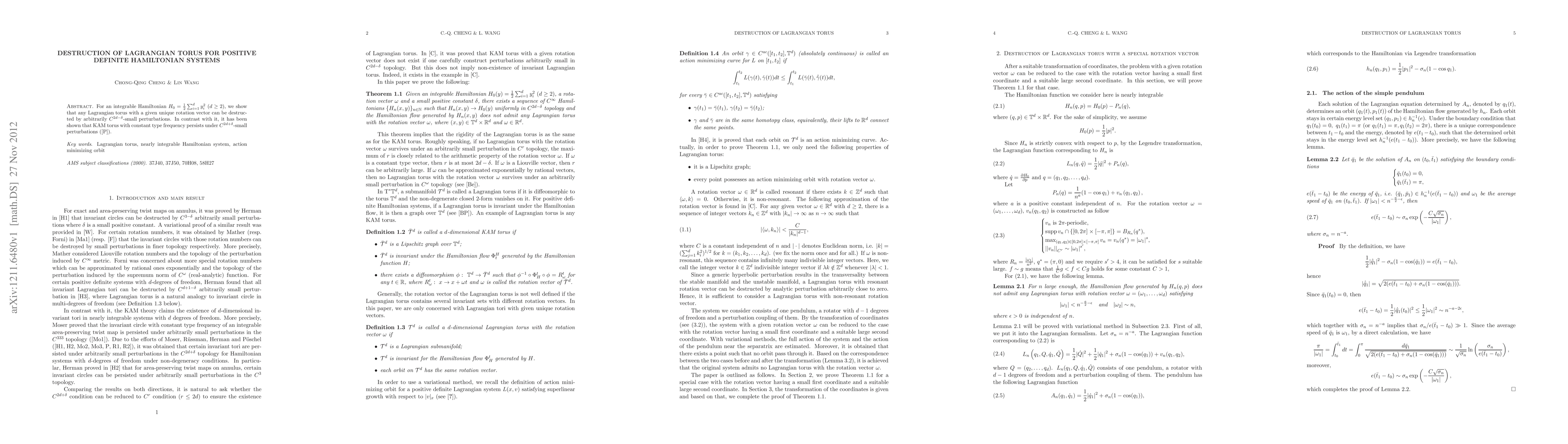 Researchers show that a specific type of torus in Hamiltonian systems can be destroyed by small perturbations, while others remain stable under similar conditions.