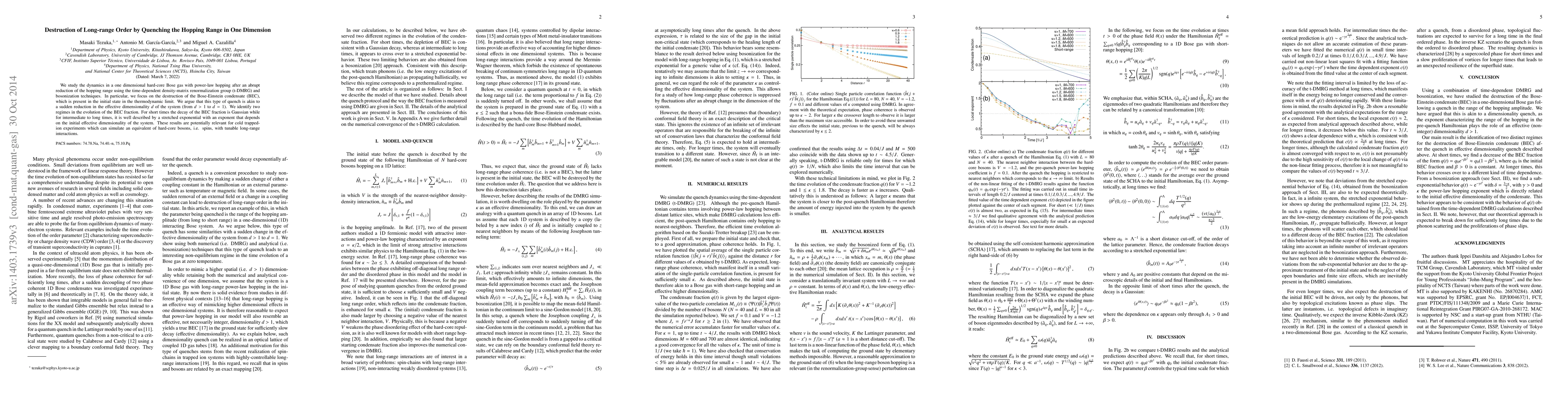 A study on a one-dimensional hard-core Bose gas shows that suddenly reducing its hopping range leads to the destruction of its Bose-Einstein condensate, with the decay process being initially Gaussian but eventually exhibiting a stretched exponential behavior.