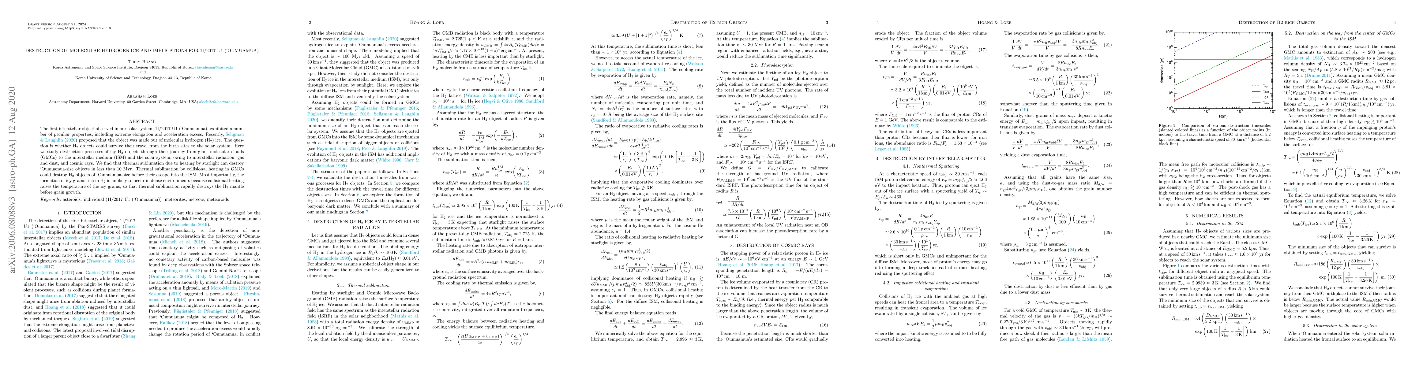 The first interstellar object observed in our solar system, 1I/2017 U1 (`Oumuamua), exhibited a number of peculiar properties, including extreme elongation and acceleration excess. Recently, \cite{Seligman:2020vb} proposed that the object was made out of molecular hydrogen (H$_{2}$) ice. The question is whether H$_2$ objects could survive their travel from the birth sites to the solar system. Here we study destruction processes of icy H$_2$ objects through their journey from giant molecular clouds (GMCs) to the interstellar medium (ISM) and the solar system, owing to interstellar radiation, gas and dust, and cosmic rays. We find that thermal sublimation due to heating by starlight can destroy `Oumuamua-size objects in less than 10 Myr. Thermal sublimation by collisional heating in GMCs could destroy H$_2$ objects of `Oumuamua-size before their escape into the ISM. Most importantly, the formation of icy grains rich in H$_2$ is unlikely to occur in dense environments because collisional heating raises the temperature of the icy grains, so that thermal sublimation rapidly destroys the H$_2$ mantle before grain growth.