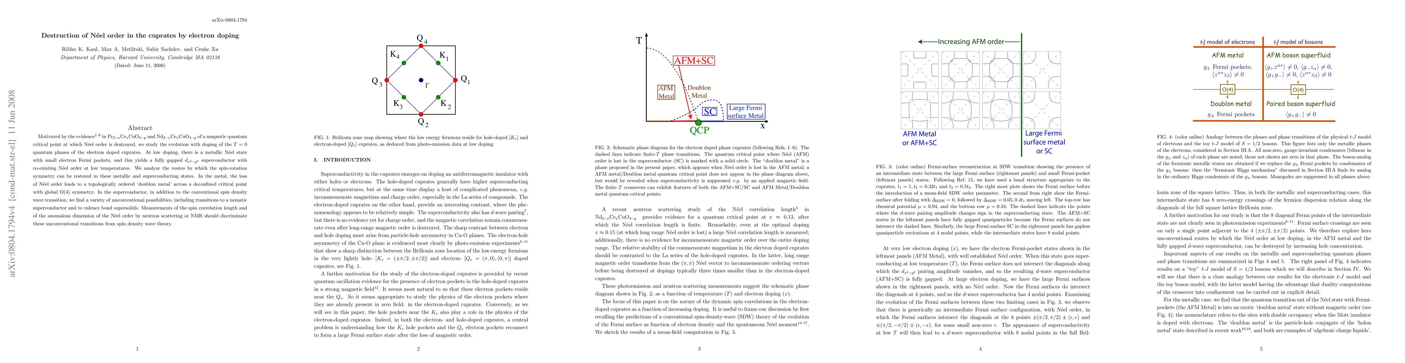This paper investigates how electron-doping in cuprates destroys Neel order, leading to metallic states and unconventional superconductivity, including nematic and valence bond supersolid phases. Neutron scattering and NMR measurements are proposed to identify these transitions.