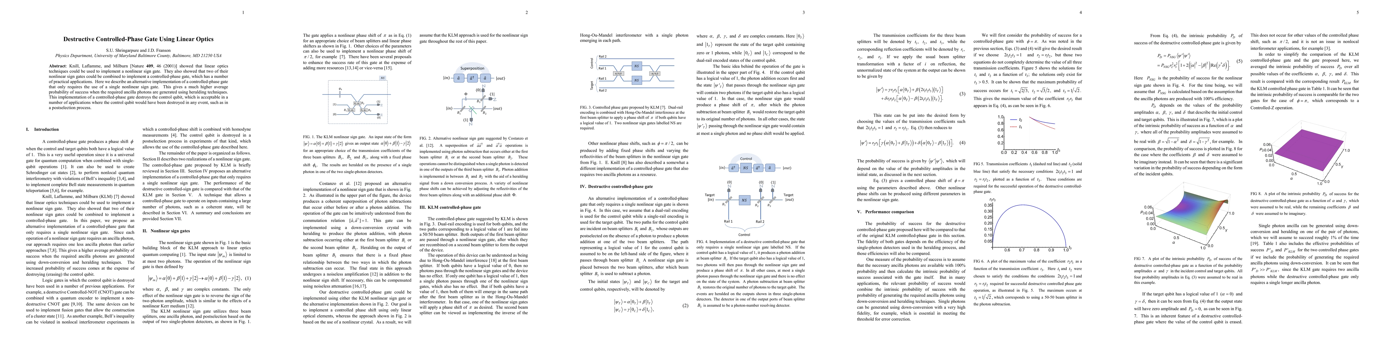 The paper introduces a destructive controlled-phase gate that uses a dual-rail encoding for the control qubit and a single nonlinear sign gate, enhancing the average success probability compared to previous implementations.