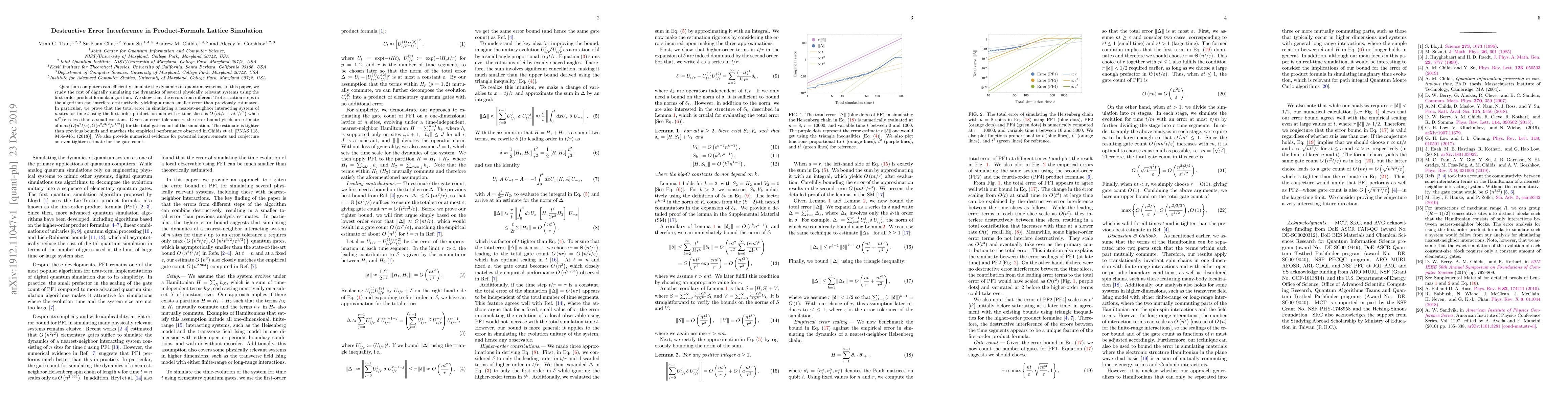 The paper presents a rigorous mathematical analysis of error interference in the first-order product formula for lattice quantum simulations, providing tighter error bounds and gate count estimates.