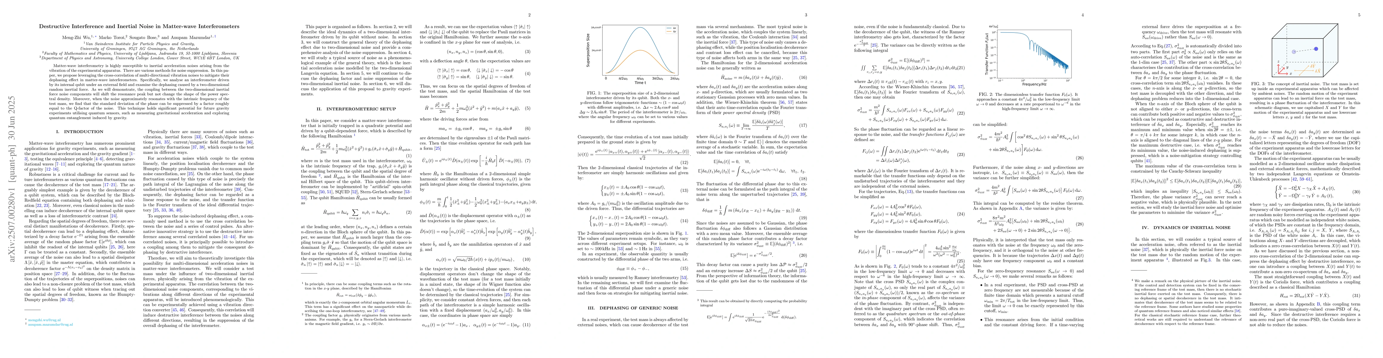 Matter-wave interferometry is highly susceptible to inertial acceleration noises arising from the vibration of the experimental apparatus. There are various methods for noise suppression. In this paper, we propose leveraging the cross-correlation of multi-directional vibration noises to mitigate their dephasing effect in matter-wave interferometers. Specifically, we analyse an interferometer driven by its internal qubit under an external field and examine the dephasing caused by a two-dimensional random inertial force. As we will demonstrate, the coupling between the two-dimensional inertial force noise components will shift the resonance peak but not change the shape of the power spectral density. Moreover, when the noise approximately resonates with the intrinsic frequency of the test mass, we find that the standard deviation of the phase can be suppressed by a factor roughly equal to the Q-factor of the noise. This technique holds significant potential for future gravity experiments utilising quantum sensors, such as measuring gravitational acceleration and exploring quantum entanglement induced by gravity.
