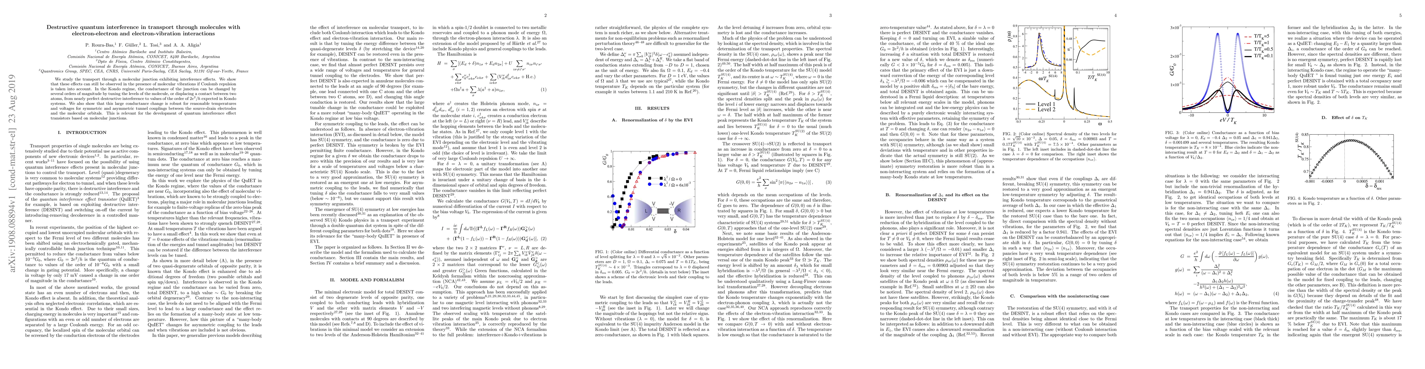 This paper investigates quantum interference in molecular junctions, demonstrating that destructive interference persists despite electron-vibration interactions and Coulomb repulsion. The conductance can be significantly altered by adjusting molecular levels or contact displacements, showing potential for quantum interference-based transistors.