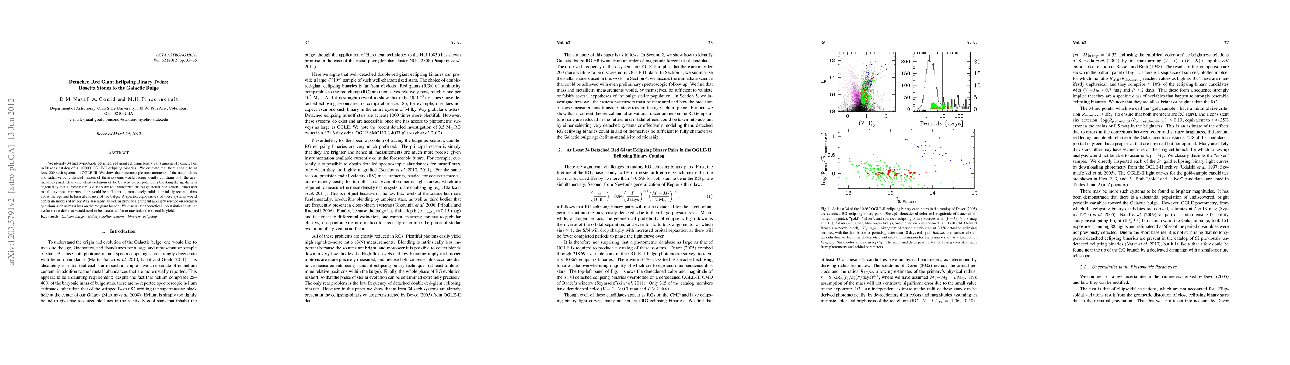 The paper presents a method to use detached red giant eclipsing binary pairs as 'Rosetta Stones' to constrain the Galactic Bulge's age, metallicity, helium abundance, and stellar evolution models.