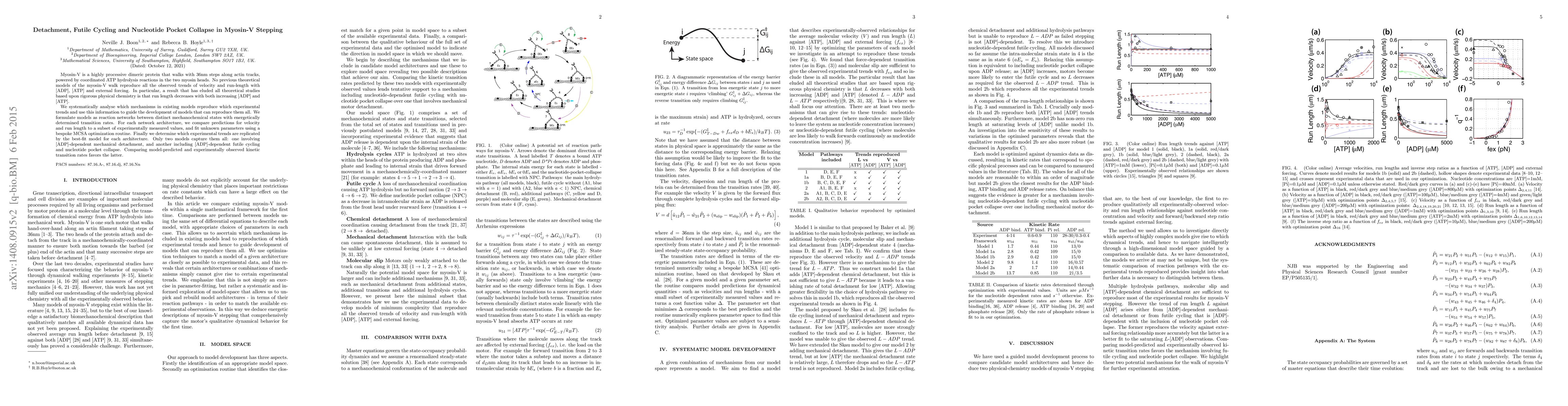Myosin-V is a highly processive dimeric protein that walks with 36nm steps along actin tracks, powered by coordinated ATP hydrolysis reactions in the two myosin heads. No previous theoretical models of the myosin-V walk reproduce all the observed trends of velocity and run-length with [ADP], [ATP] and external forcing. In particular, a result that has eluded all theoretical studies based upon rigorous physical chemistry is that run length decreases with both increasing [ADP] and [ATP]. We systematically analyse which mechanisms in existing models reproduce which experimental trends and use this information to guide the development of models that can reproduce them all. We formulate models as reaction networks between distinct mechanochemical states with energetically determined transition rates. For each network architecture, we compare predictions for velocity and run length to a subset of experimentally measured values, and fit unknown parameters using a bespoke MCSA optimization routine. Finally we determine which experimental trends are replicated by the best-fit model for each architecture. Only two models capture them all: one involving [ADP]-dependent mechanical detachment, and another including [ADP]-dependent futile cycling and nucleotide pocket collapse. Comparing model-predicted and experimentally observed kinetic transition rates favors the latter.