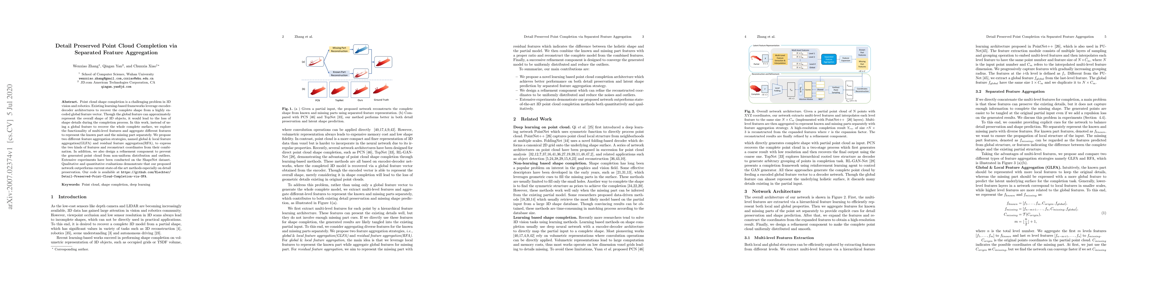 This paper proposes a method for point cloud shape completion using multi-level features, specifically employing global and local feature aggregation strategies to separately represent known and missing parts. The approach aims to preserve details better than existing methods, as demonstrated through experiments on the ShapeNet dataset.