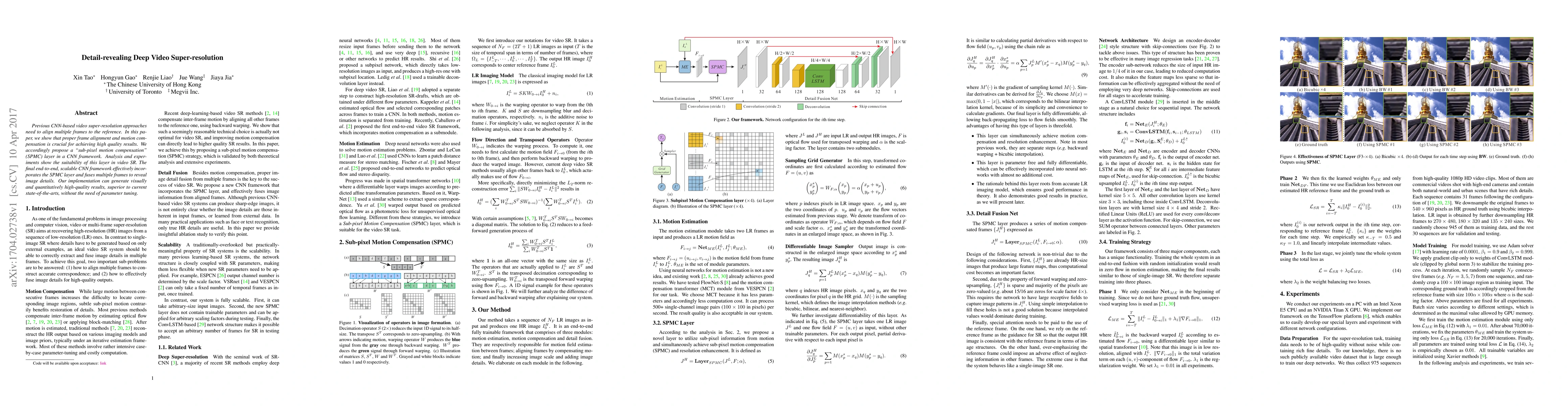 This research paper proposes a novel CNN framework for deep video super-resolution that emphasizes the importance of frame alignment and motion compensation. The authors introduce a `sub-pixel motion compensation' (SPMC) layer within the CNN to enhance detail revelation. The end-to-end scalable framework effectively integrates the SPMC layer, achieving superior visual and quantitative results compared to existing methods without requiring parameter tuning.