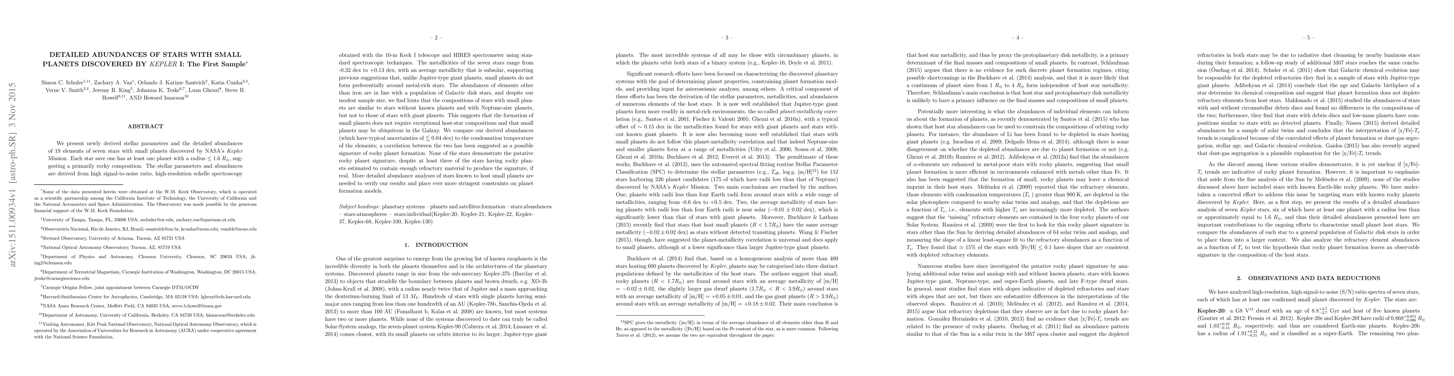 This study derives stellar parameters and abundances of 19 elements for seven stars with small planets, finding subsolar average metallicities and compositions similar to Galactic disk stars, suggesting small planet formation does not require exceptional host-star compositions. Despite some stars having rocky planets, no correlation with the condensation temperature of elements was observed, indicating a need for more detailed abundance analyses.
