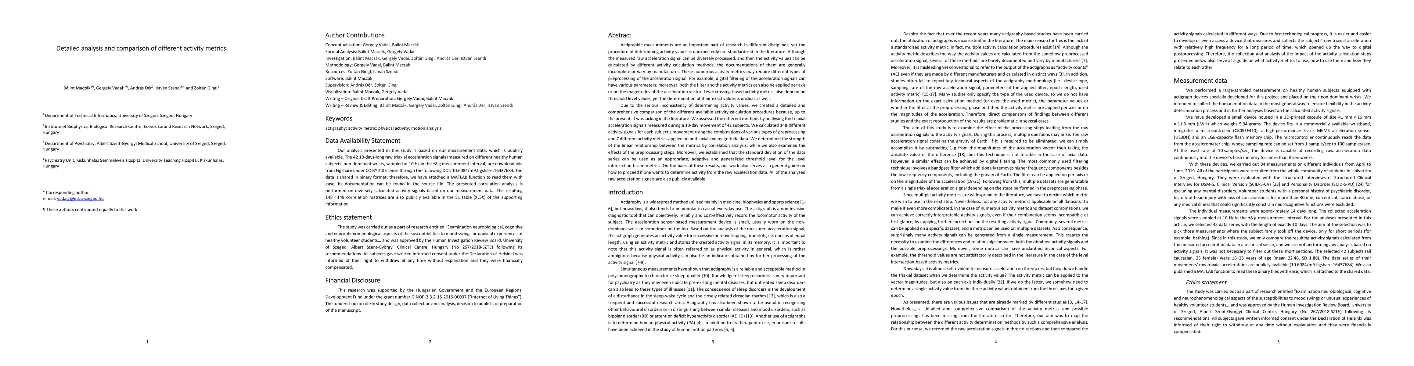This study compares 7 different activity metrics applied to triaxial acceleration signals from 42 subjects over 10 days, revealing the effects of preprocessing steps and providing a guide for determining activity values from raw data.