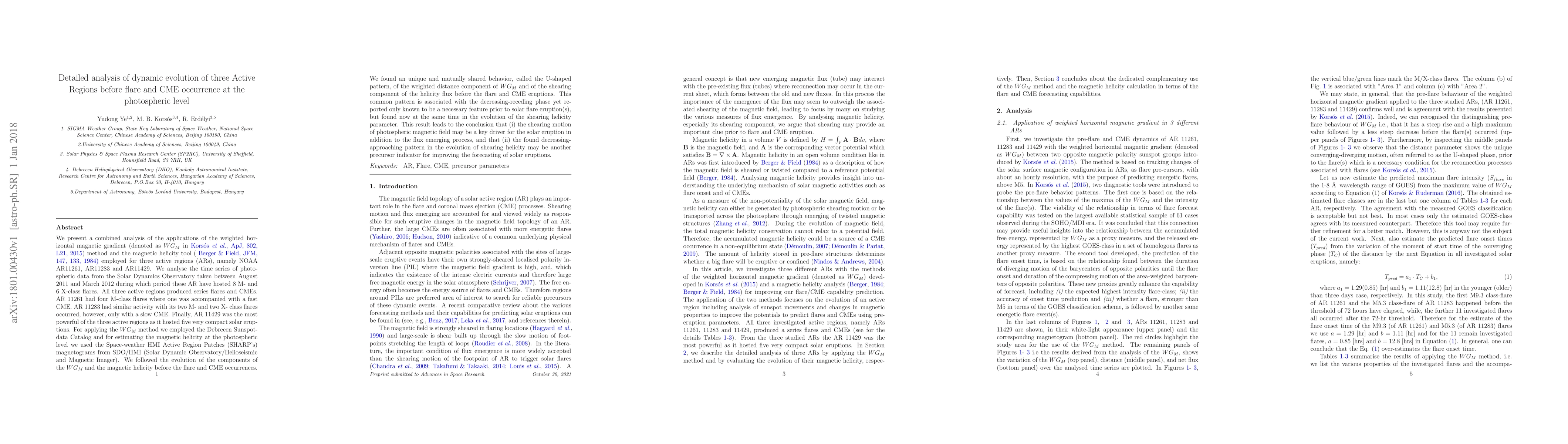 This paper analyzes the dynamic evolution of three active regions (AR11261, AR11283, and AR11429) using the weighted horizontal magnetic gradient and magnetic helicity tools, revealing a U-shaped pattern linked to the shearing helicity flux. This pattern suggests that shearing motions in the photospheric magnetic field are crucial drivers for solar flares and CMEs, alongside flux emergence.