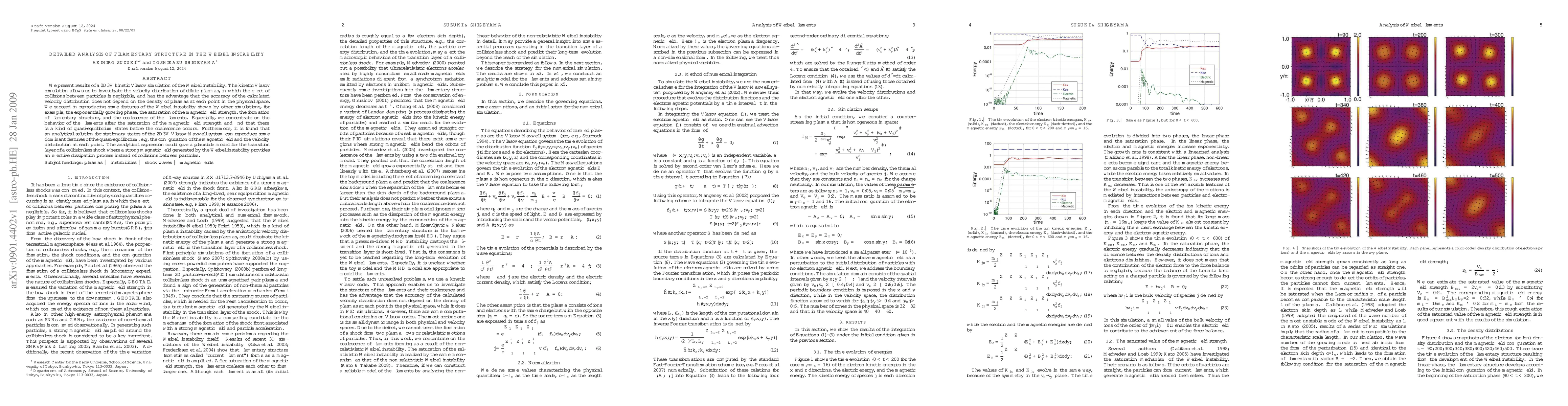 Researchers used a simulation to study the Weibel instability in plasmas, finding that it creates filamentary structures with a quasi-equilibrium state before coalescence, which can be modeled using an analytical solution for stationary states.
